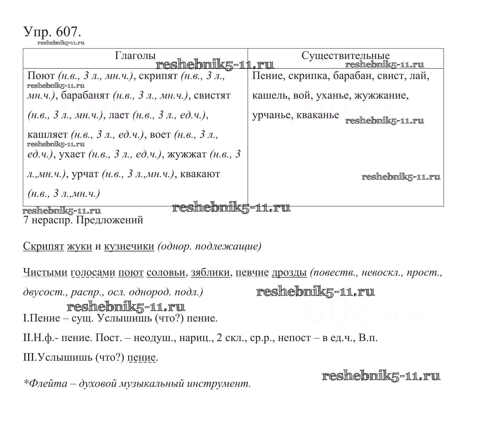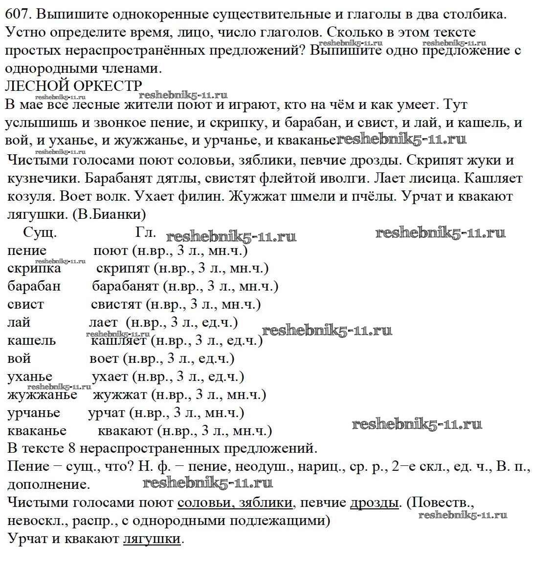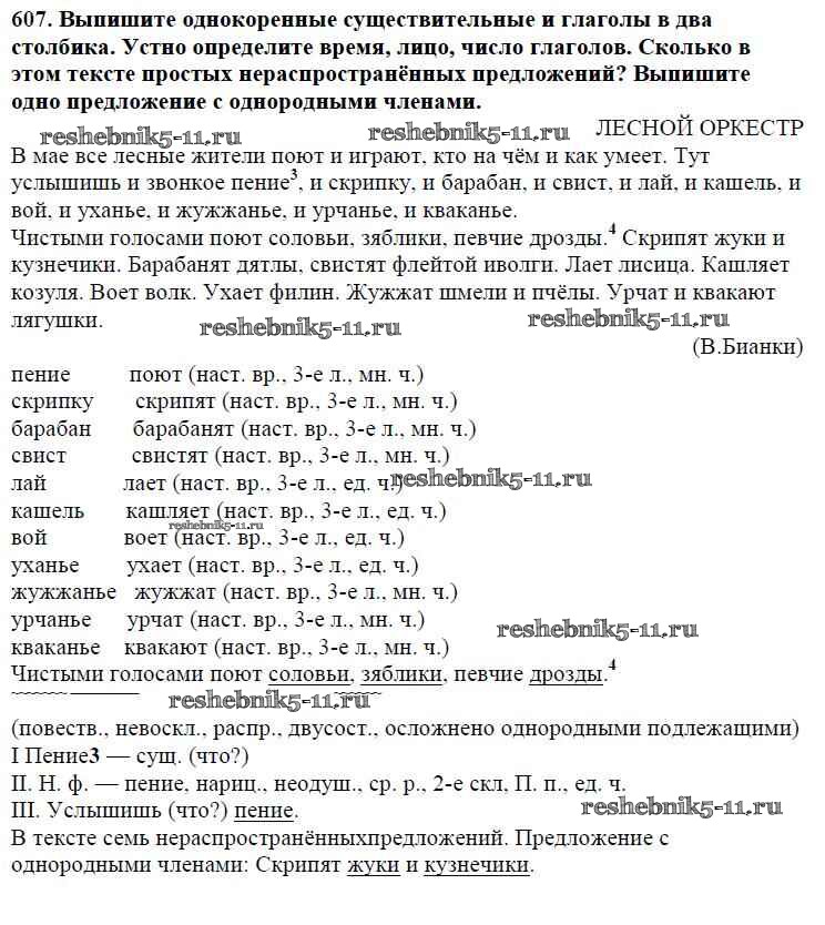 Готовая домашняя работа с ответами по Русскому языку за 5 класс Баранов, Ладыженская, Тростенцова, Кулибаба, Григорян Учебник Часть 1, 2 Просвещение 2016 ФГОС - Часть 2. Упражнения 607