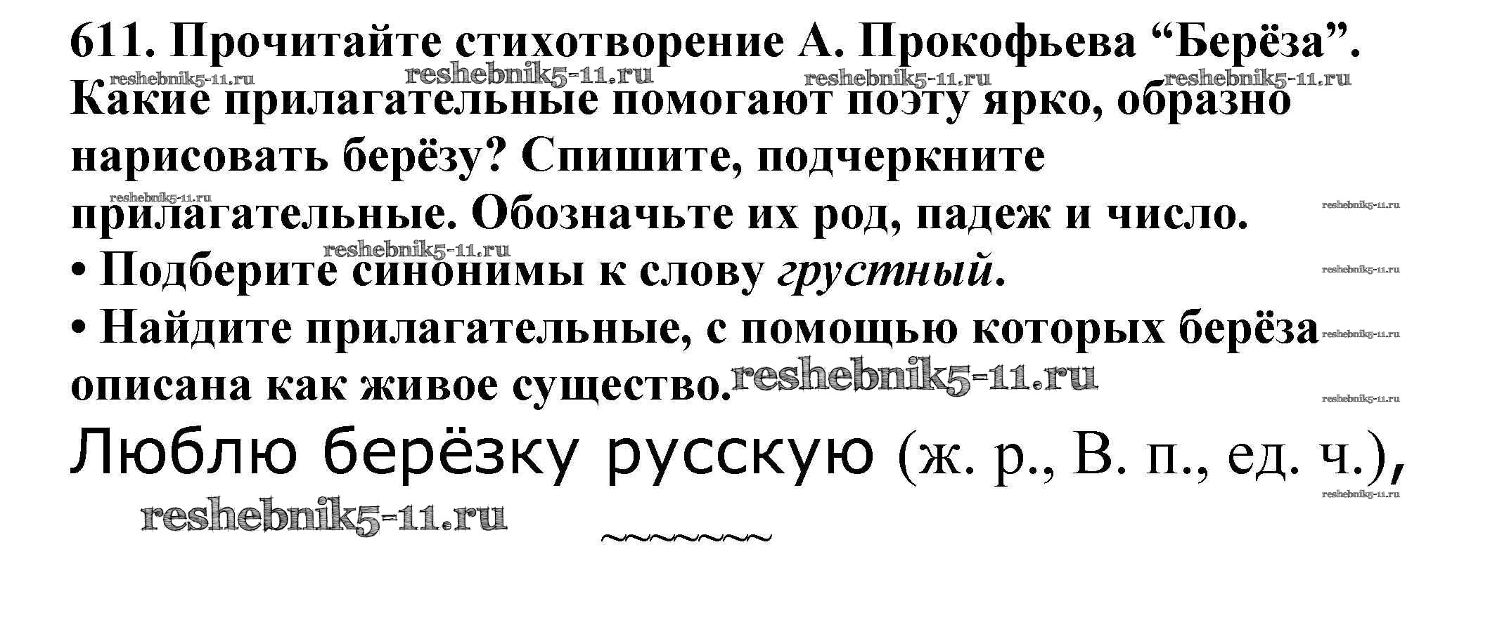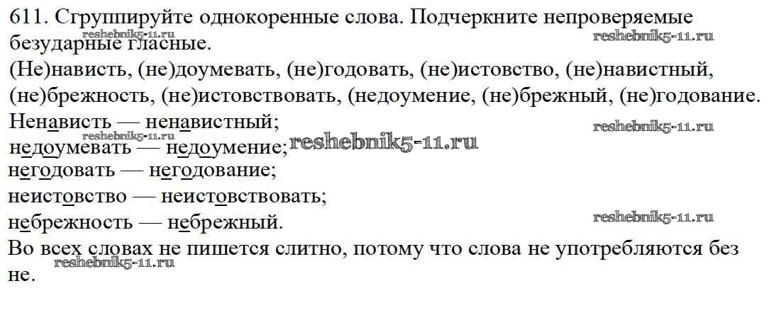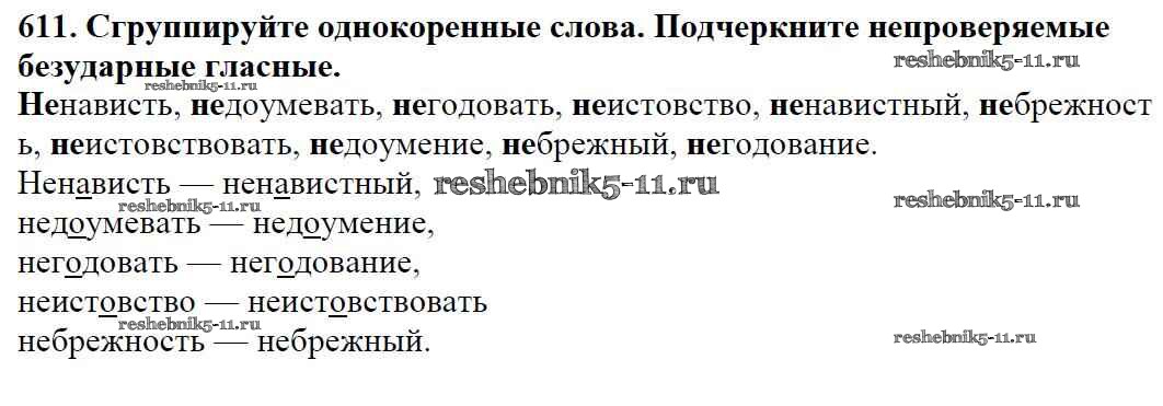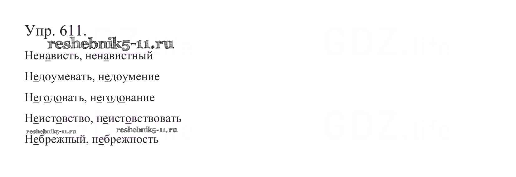 Готовая домашняя работа с ответами по Русскому языку за 5 класс Баранов, Ладыженская, Тростенцова, Кулибаба, Григорян Учебник Часть 1, 2 Просвещение 2016 ФГОС - Часть 2. Упражнения 611