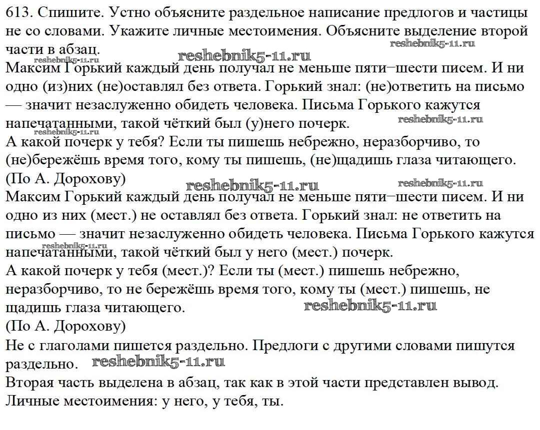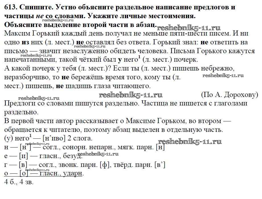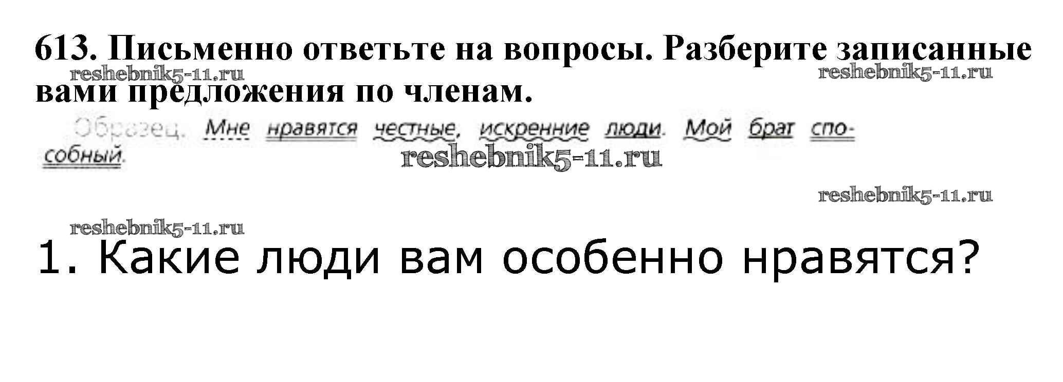 Готовая домашняя работа с ответами по Русскому языку за 5 класс Баранов, Ладыженская, Тростенцова, Кулибаба, Григорян Учебник Часть 1, 2 Просвещение 2016 ФГОС - Часть 2. Упражнения 613