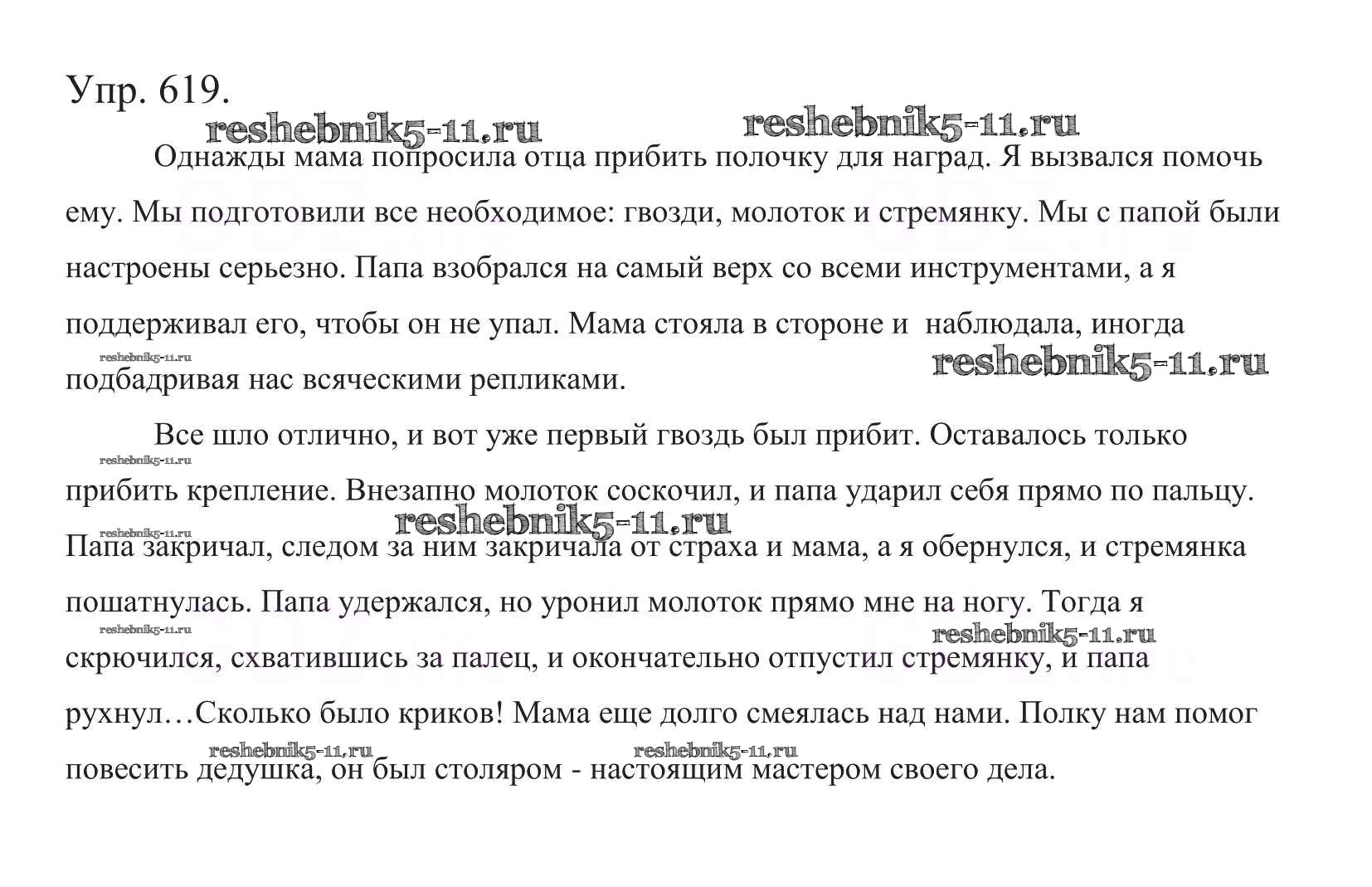 Русский язык за 5 класс Баранов Учебник Просвещение часть 2. упражнение 619