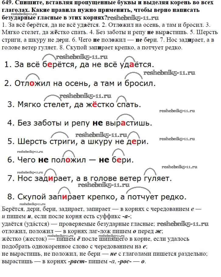 Готовая домашняя работа с ответами по Русскому языку за 5 класс Баранов, Ладыженская, Тростенцова, Кулибаба, Григорян Учебник Часть 1, 2 Просвещение 2016 ФГОС - Часть 2. Упражнения 649