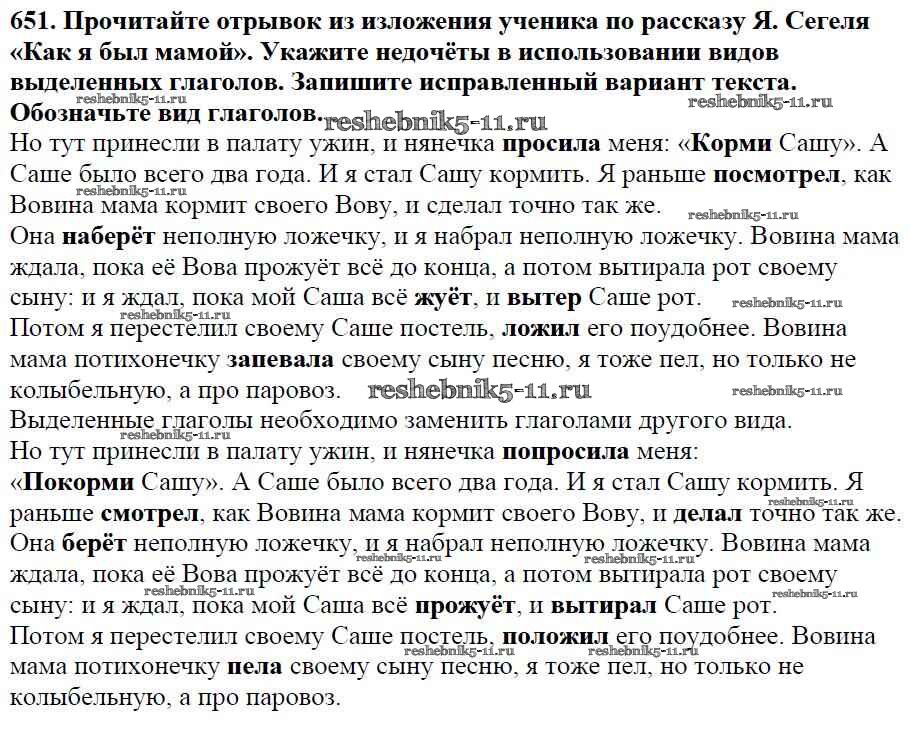 Русский язык за 5 класс Баранов Учебник Просвещение часть 2. упражнение 651