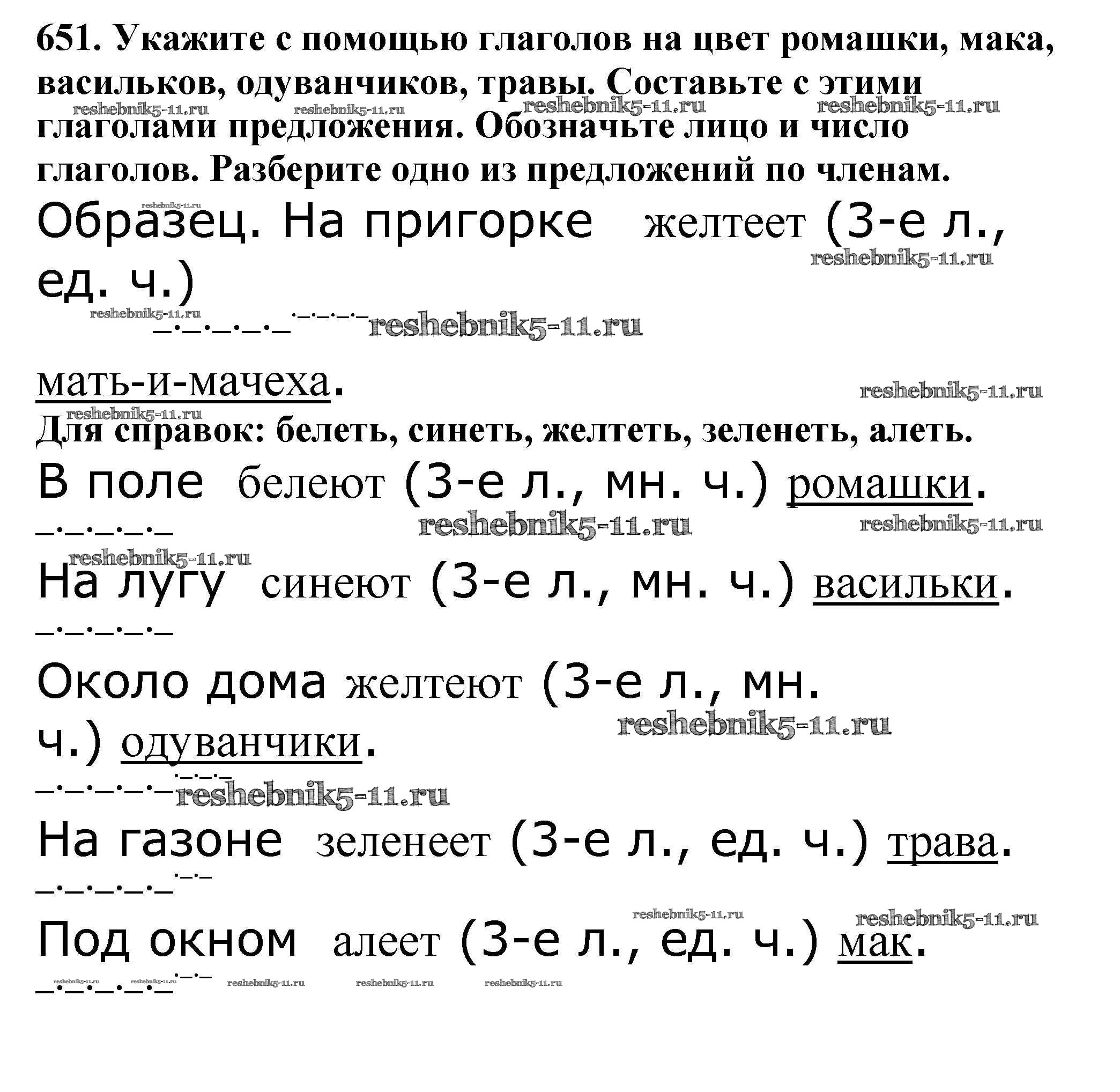 Готовая домашняя работа с ответами по Русскому языку за 5 класс Баранов, Ладыженская, Тростенцова, Кулибаба, Григорян Учебник Часть 1, 2 Просвещение 2016 ФГОС - Часть 2. Упражнения 651
