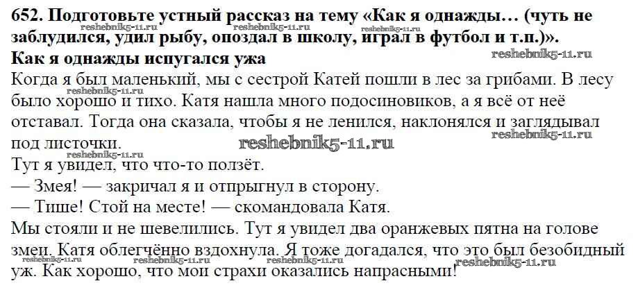 Русский язык за 5 класс Баранов Учебник Просвещение часть 2. упражнение 652