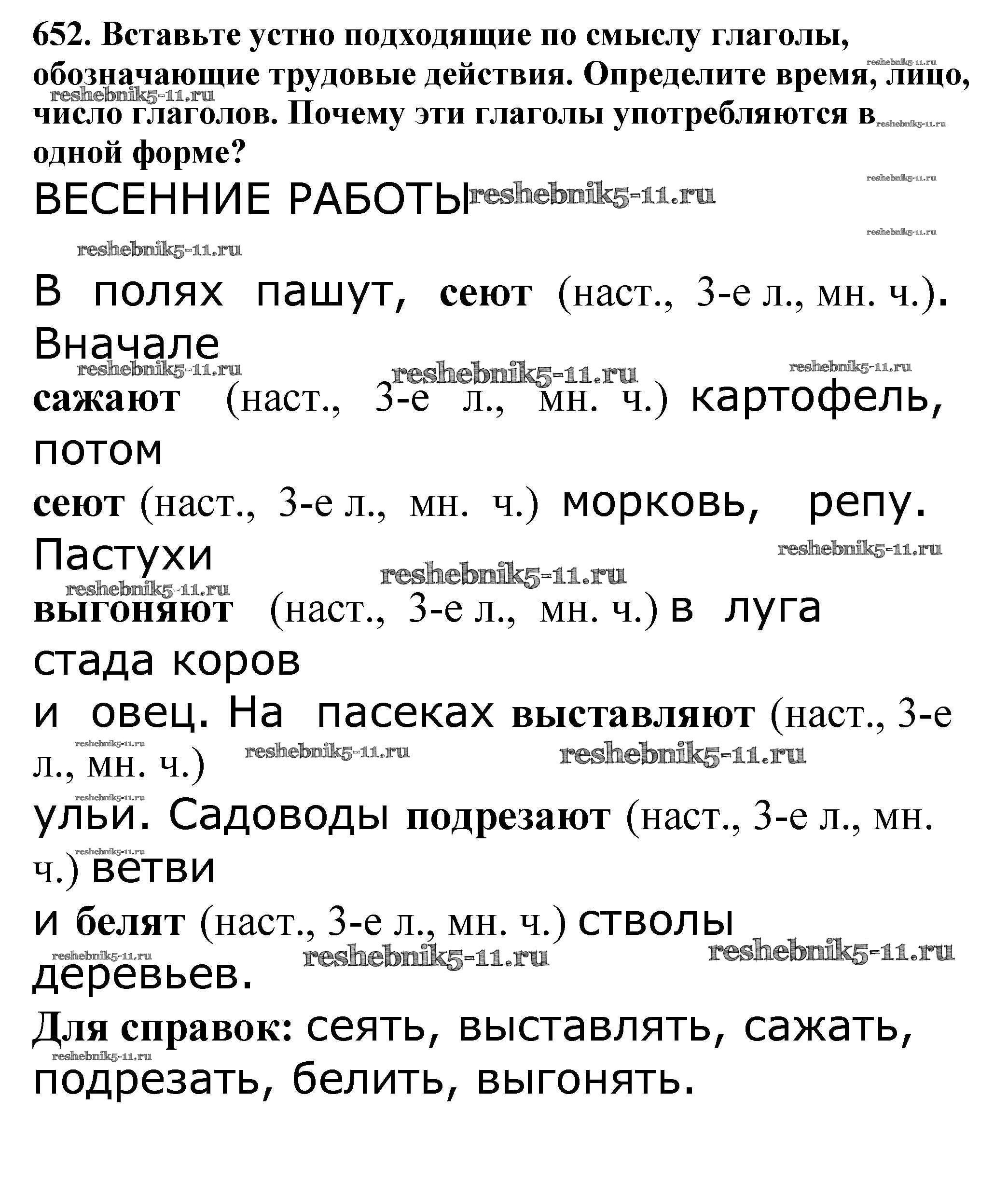 Готовая домашняя работа с ответами по Русскому языку за 5 класс Баранов, Ладыженская, Тростенцова, Кулибаба, Григорян Учебник Часть 1, 2 Просвещение 2016 ФГОС - Часть 2. Упражнения 652