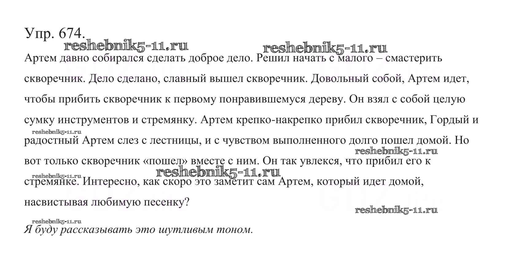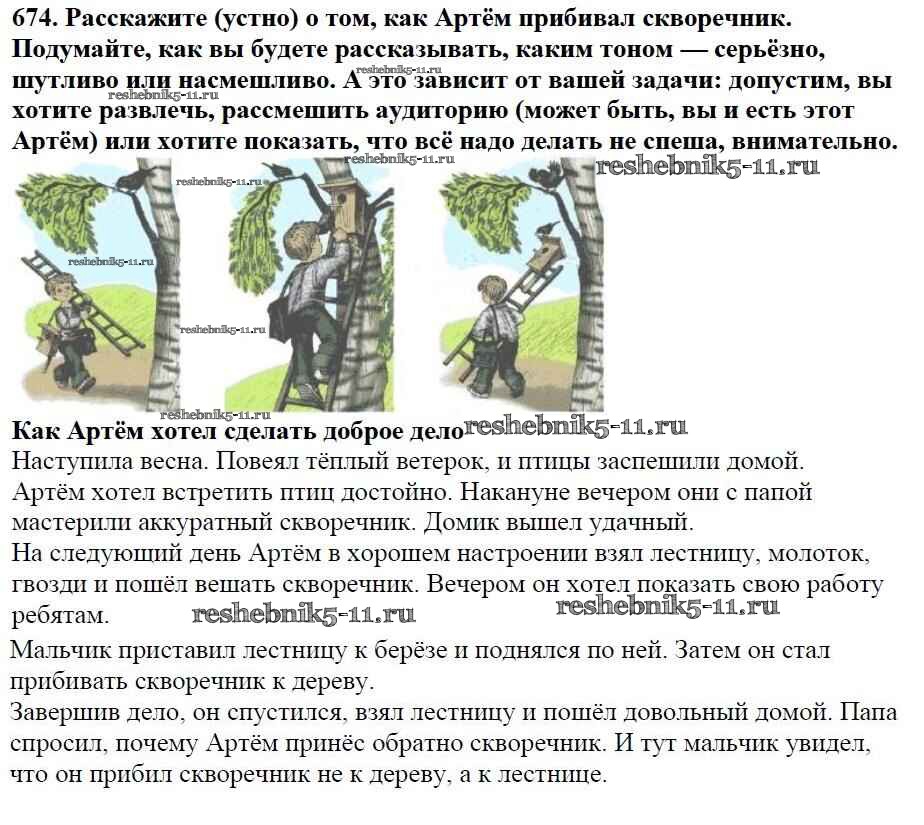Готовая домашняя работа с ответами по Русскому языку за 5 класс Баранов, Ладыженская, Тростенцова, Кулибаба, Григорян Учебник Часть 1, 2 Просвещение 2016 ФГОС - Часть 2. Упражнения 674
