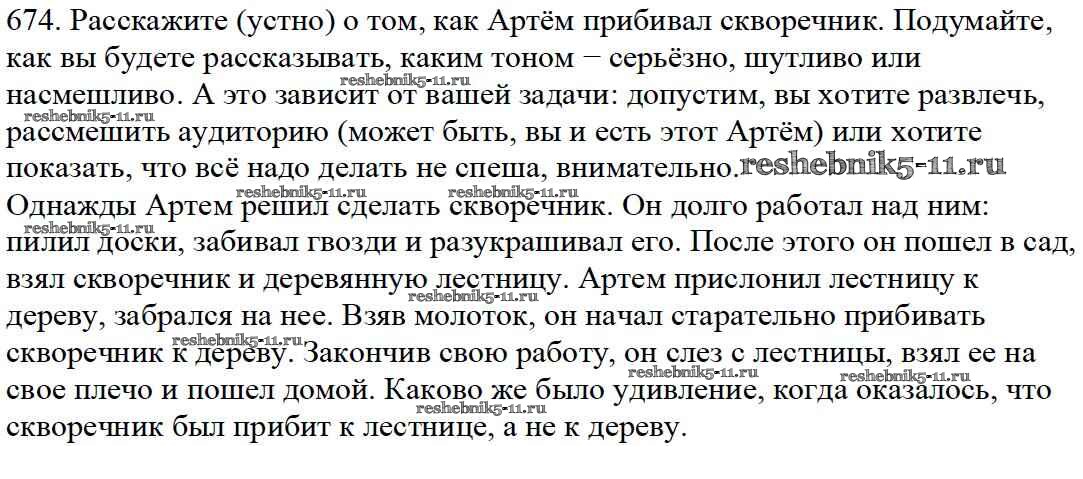 Русский язык за 5 класс Баранов Учебник Просвещение часть 2. упражнение 674