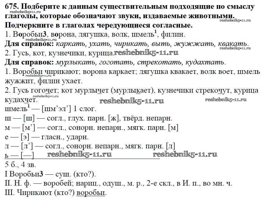 Готовая домашняя работа с ответами по Русскому языку за 5 класс Баранов, Ладыженская, Тростенцова, Кулибаба, Григорян Учебник Часть 1, 2 Просвещение 2016 ФГОС - Часть 2. Упражнения 675