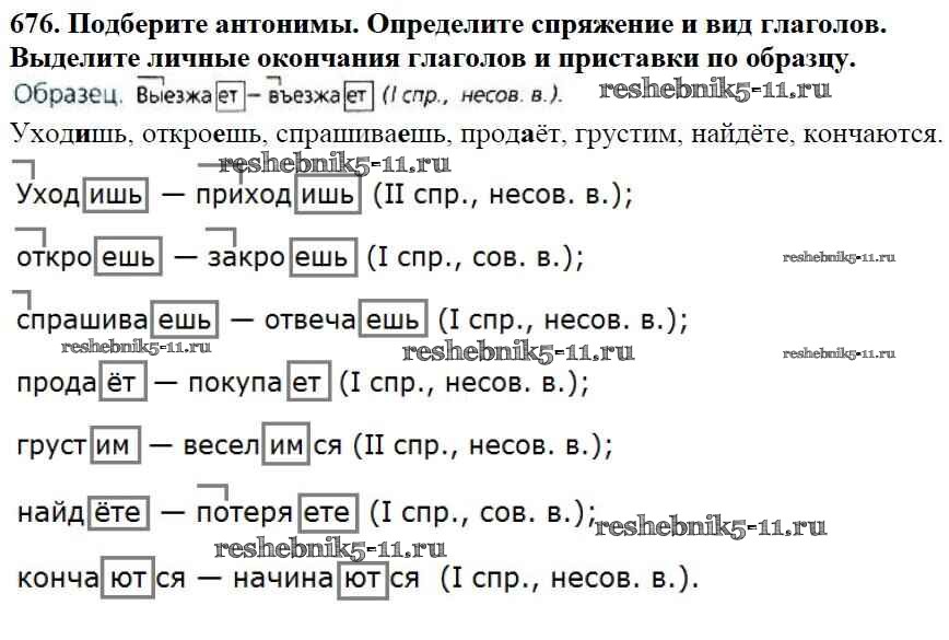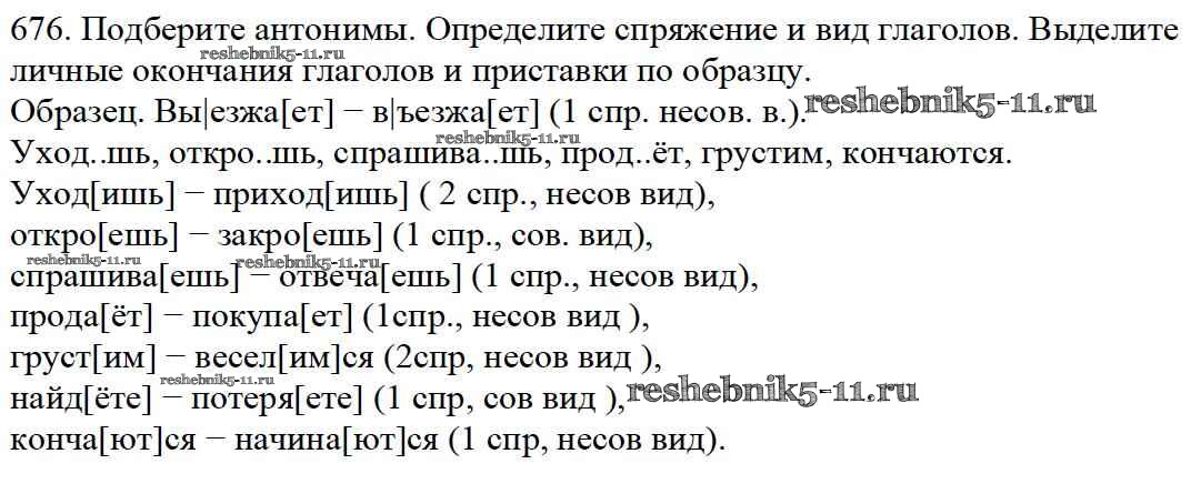 Готовая домашняя работа с ответами по Русскому языку за 5 класс Баранов, Ладыженская, Тростенцова, Кулибаба, Григорян Учебник Часть 1, 2 Просвещение 2016 ФГОС - Часть 2. Упражнения 676