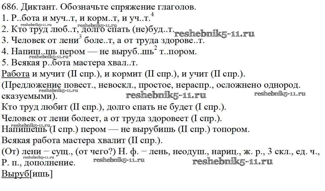 Готовая домашняя работа с ответами по Русскому языку за 5 класс Баранов, Ладыженская, Тростенцова, Кулибаба, Григорян Учебник Часть 1, 2 Просвещение 2016 ФГОС - Часть 2. Упражнения 686