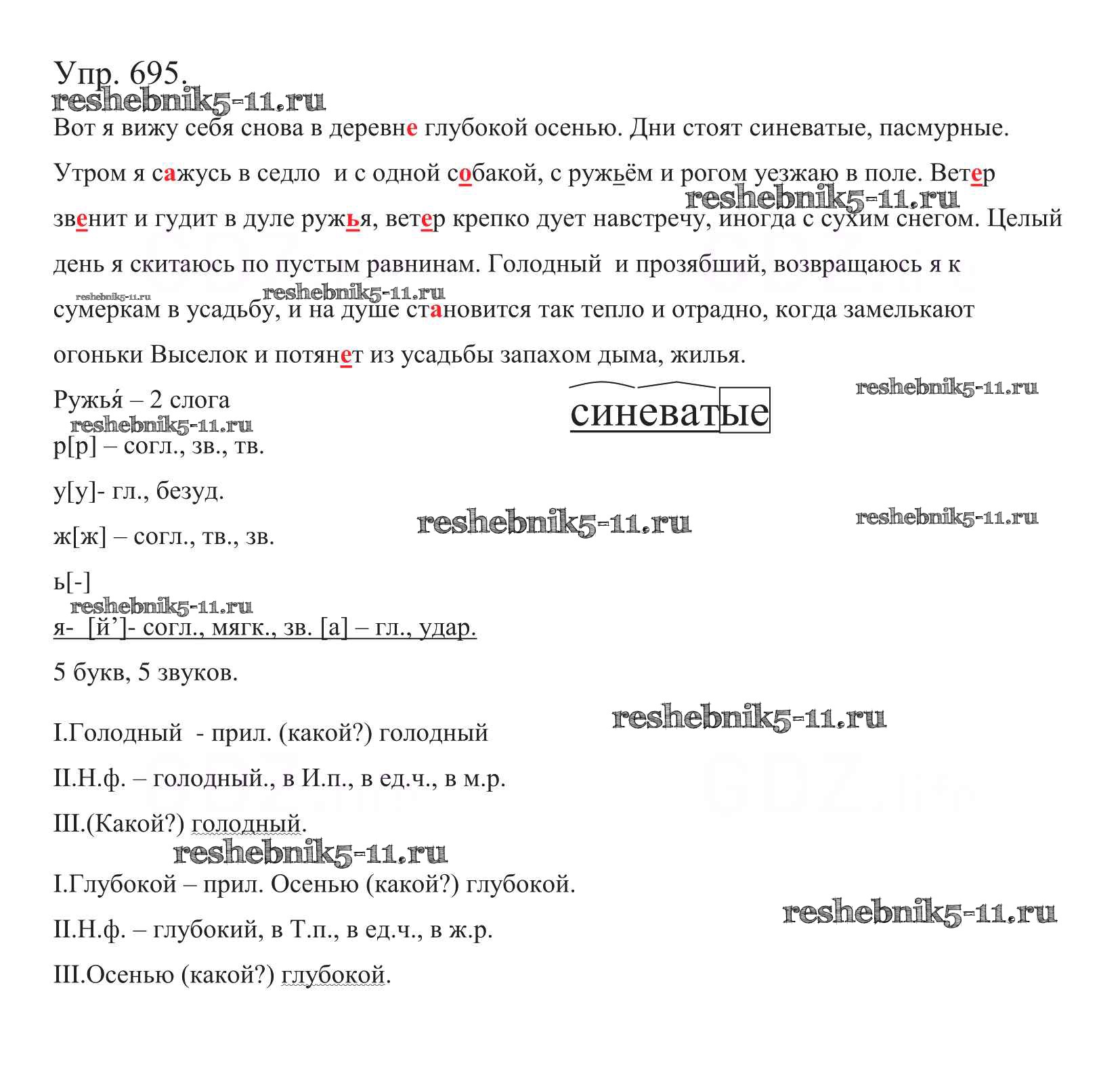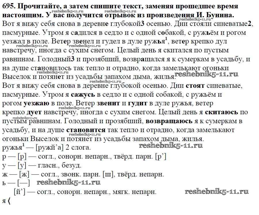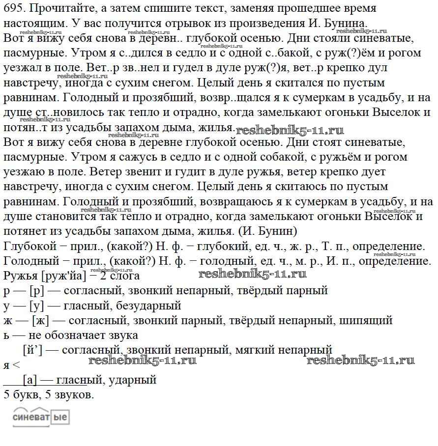 Готовая домашняя работа с ответами по Русскому языку за 5 класс Баранов, Ладыженская, Тростенцова, Кулибаба, Григорян Учебник Часть 1, 2 Просвещение 2016 ФГОС - Часть 2. Упражнения 695