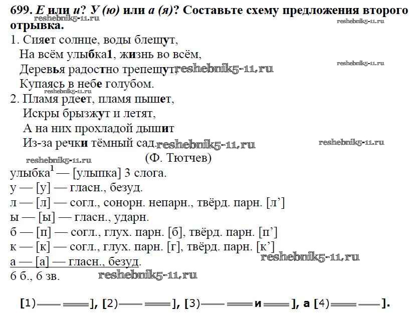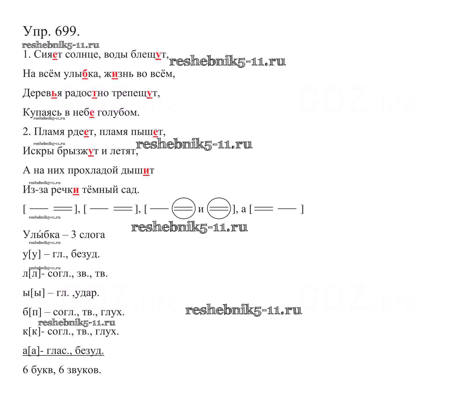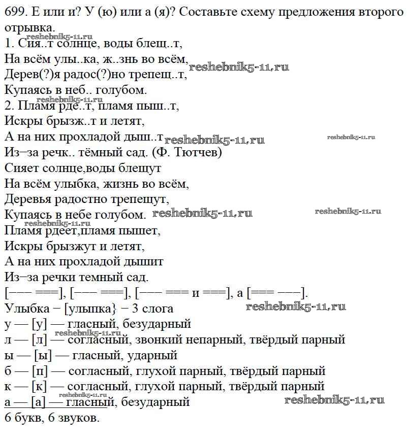 Готовая домашняя работа с ответами по Русскому языку за 5 класс Баранов, Ладыженская, Тростенцова, Кулибаба, Григорян Учебник Часть 1, 2 Просвещение 2016 ФГОС - Часть 2. Упражнения 699