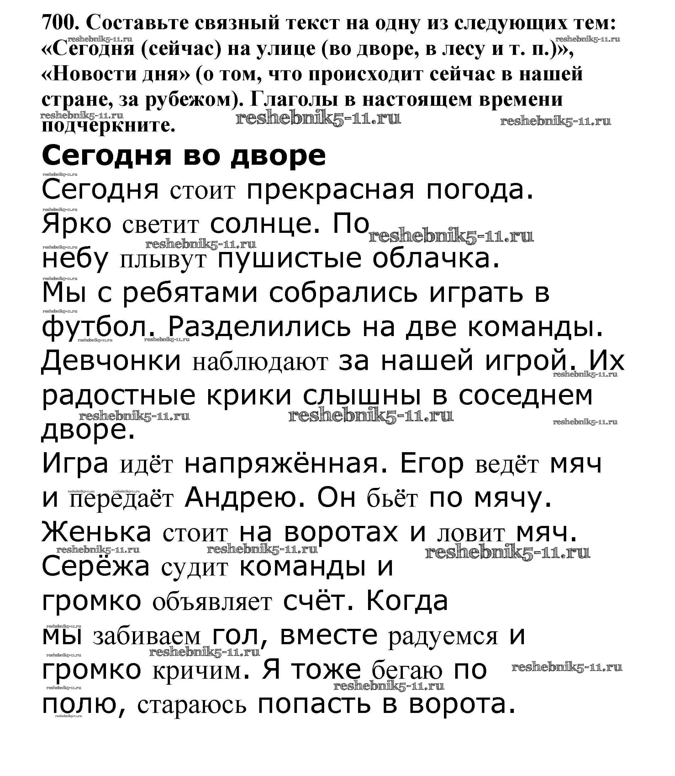 Русский язык за 5 класс Баранов Учебник Просвещение часть 2. упражнение 700