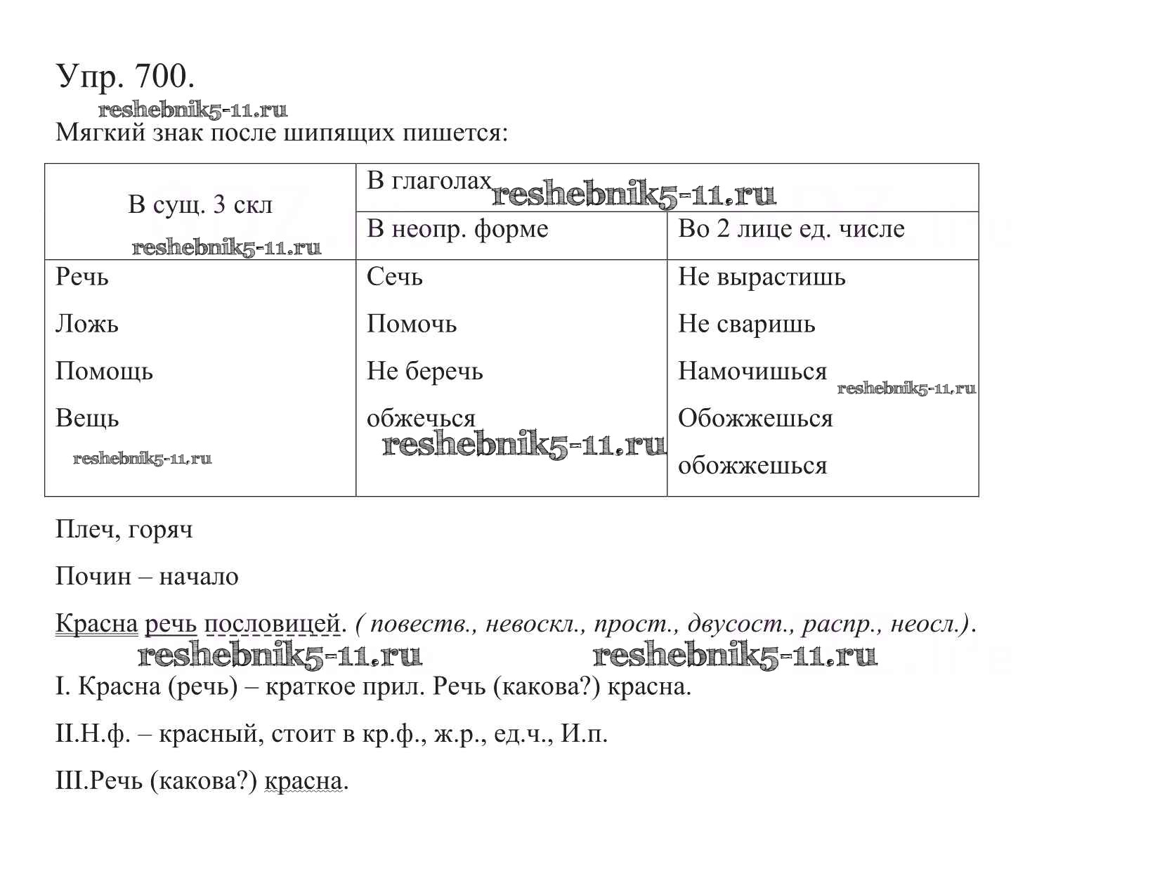 Готовая домашняя работа с ответами по Русскому языку за 5 класс Баранов, Ладыженская, Тростенцова, Кулибаба, Григорян Учебник Часть 1, 2 Просвещение 2016 ФГОС - Часть 2. Упражнения 700