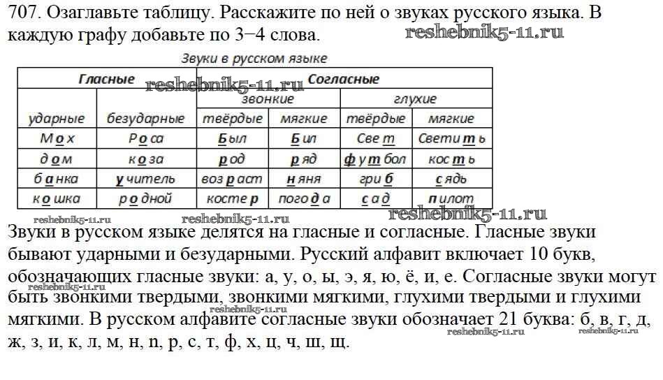 Готовая домашняя работа с ответами по Русскому языку за 5 класс Баранов, Ладыженская, Тростенцова, Кулибаба, Григорян Учебник Часть 1, 2 Просвещение 2016 ФГОС - Часть 2. Упражнения 707
