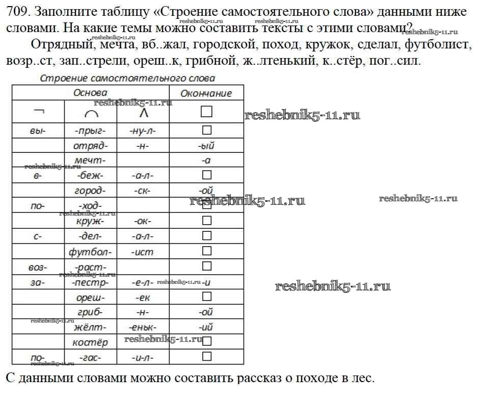 Русский язык за 5 класс Баранов Учебник Просвещение часть 2. упражнение 709