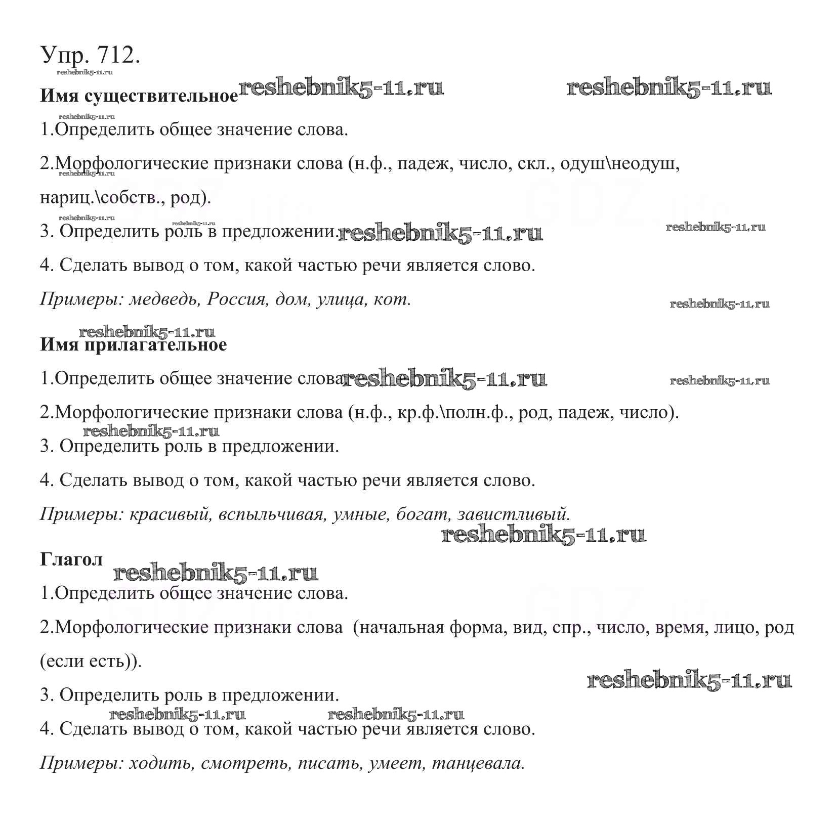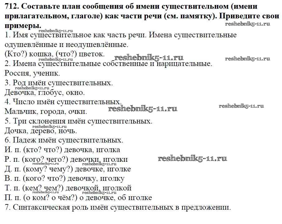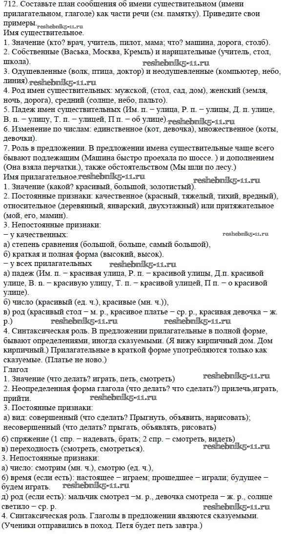 Готовая домашняя работа с ответами по Русскому языку за 5 класс Баранов, Ладыженская, Тростенцова, Кулибаба, Григорян Учебник Часть 1, 2 Просвещение 2016 ФГОС - Часть 2. Упражнения 712