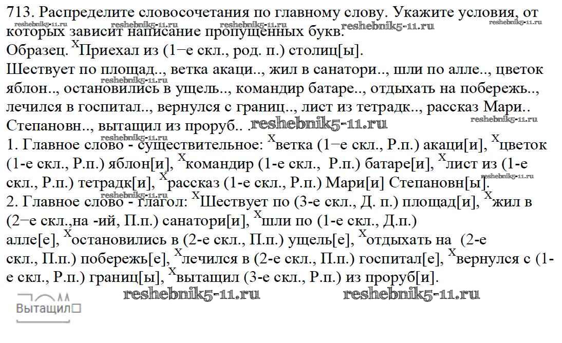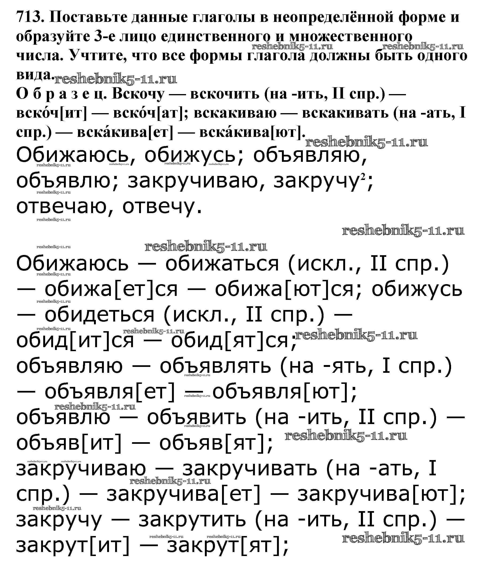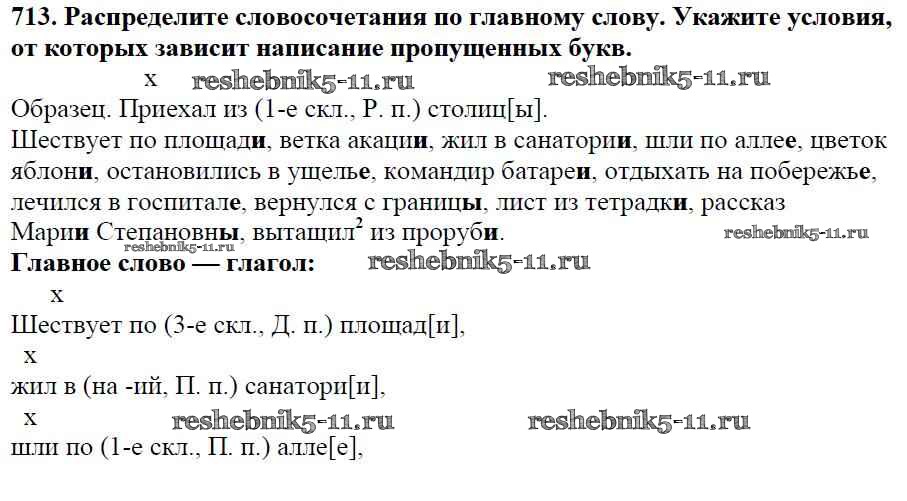 Готовая домашняя работа с ответами по Русскому языку за 5 класс Баранов, Ладыженская, Тростенцова, Кулибаба, Григорян Учебник Часть 1, 2 Просвещение 2016 ФГОС - Часть 2. Упражнения 713