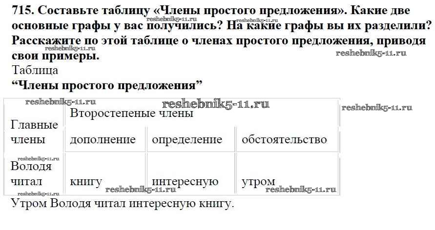 Готовая домашняя работа с ответами по Русскому языку за 5 класс Баранов, Ладыженская, Тростенцова, Кулибаба, Григорян Учебник Часть 1, 2 Просвещение 2016 ФГОС - Часть 2. Упражнения 715