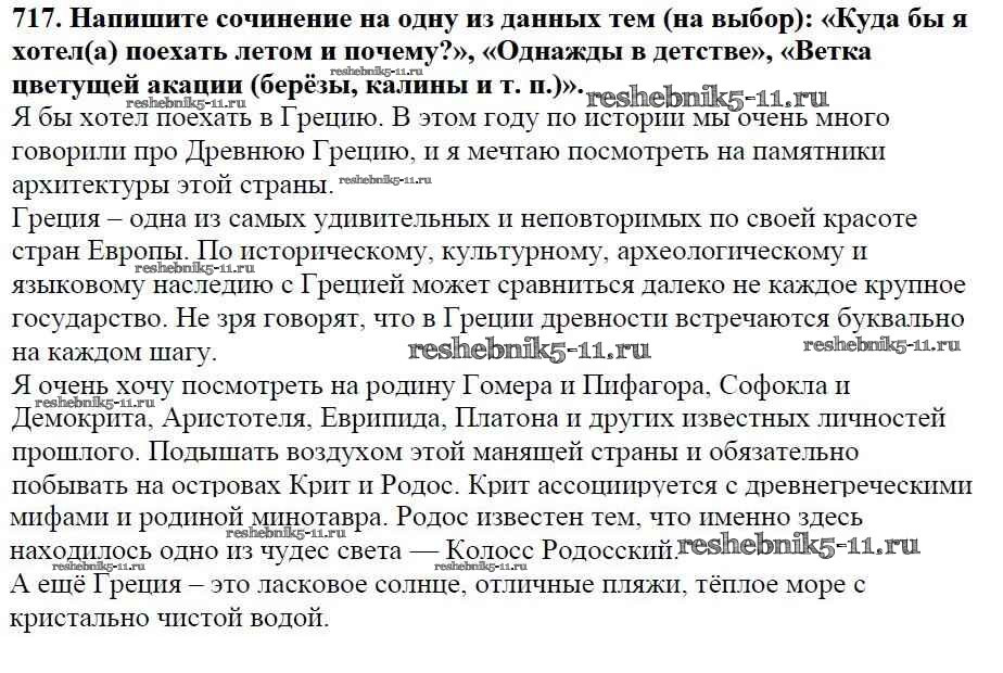 Русский язык за 5 класс Баранов Учебник Просвещение часть 2. упражнение 717