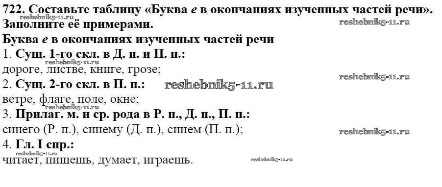 Готовая домашняя работа с ответами по Русскому языку за 5 класс Баранов, Ладыженская, Тростенцова, Кулибаба, Григорян Учебник Часть 1, 2 Просвещение 2016 ФГОС - Часть 2. Упражнения 722