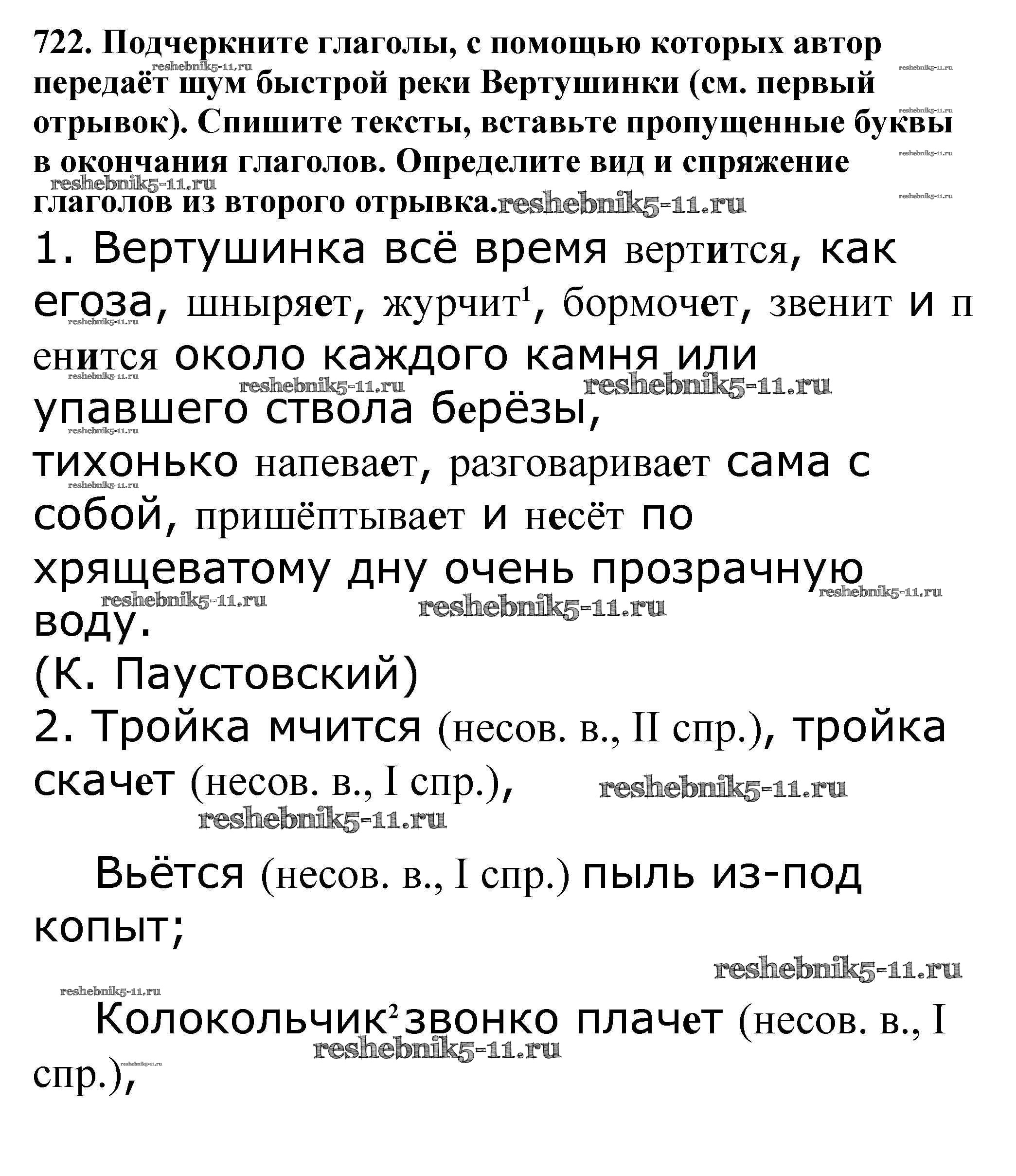 Русский язык за 5 класс Баранов Учебник Просвещение часть 2. упражнение 722