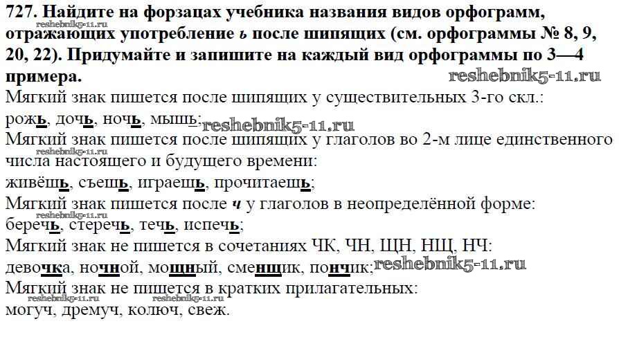 Готовая домашняя работа с ответами по Русскому языку за 5 класс Баранов, Ладыженская, Тростенцова, Кулибаба, Григорян Учебник Часть 1, 2 Просвещение 2016 ФГОС - Часть 2. Упражнения 727