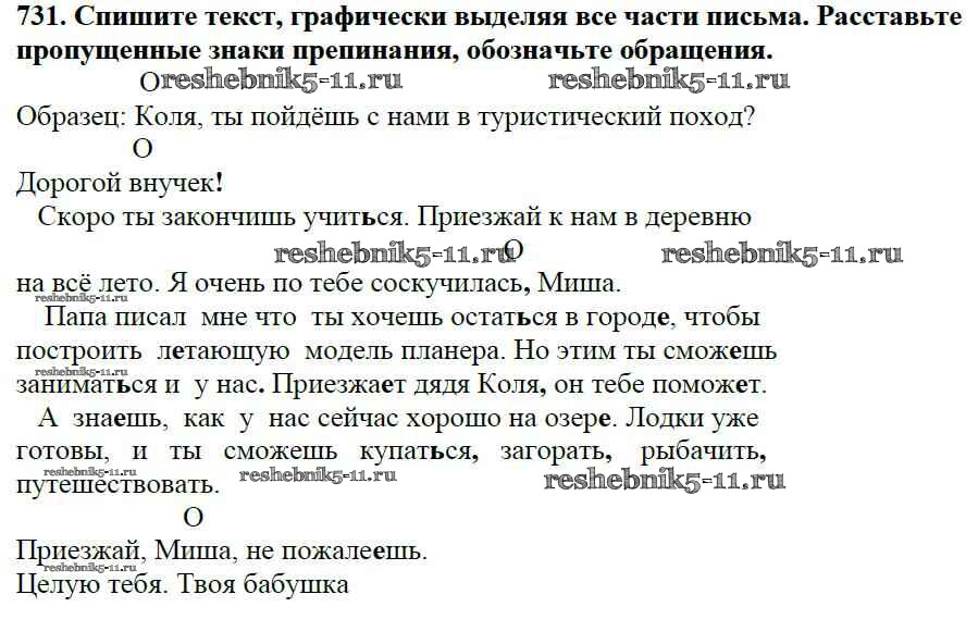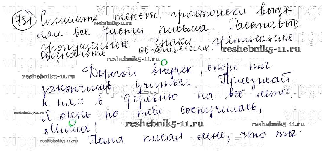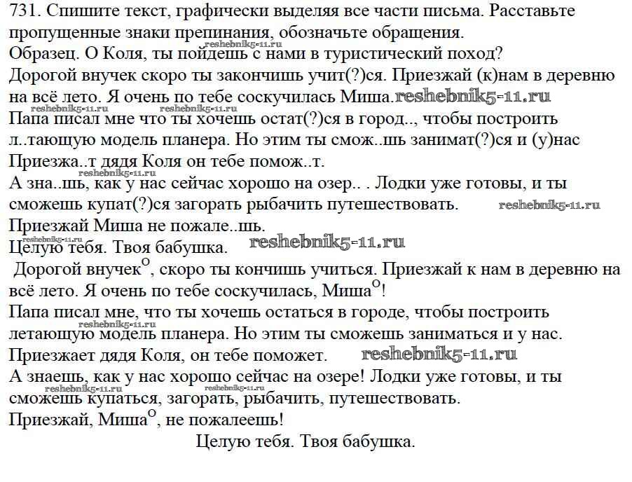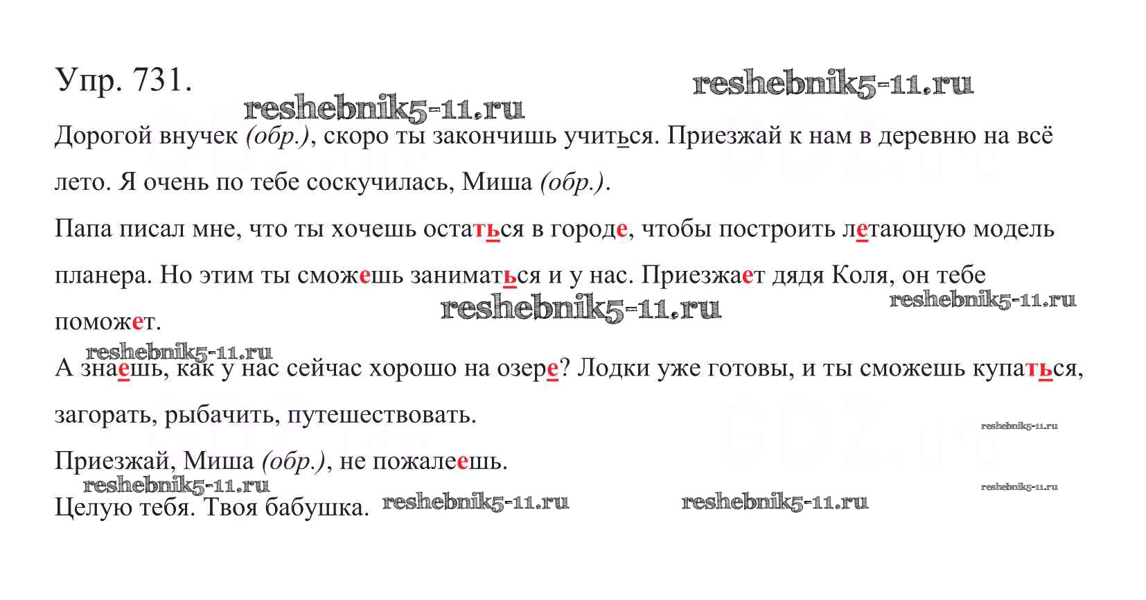 Готовая домашняя работа с ответами по Русскому языку за 5 класс Баранов, Ладыженская, Тростенцова, Кулибаба, Григорян Учебник Часть 1, 2 Просвещение 2016 ФГОС - Часть 2. Упражнения 731
