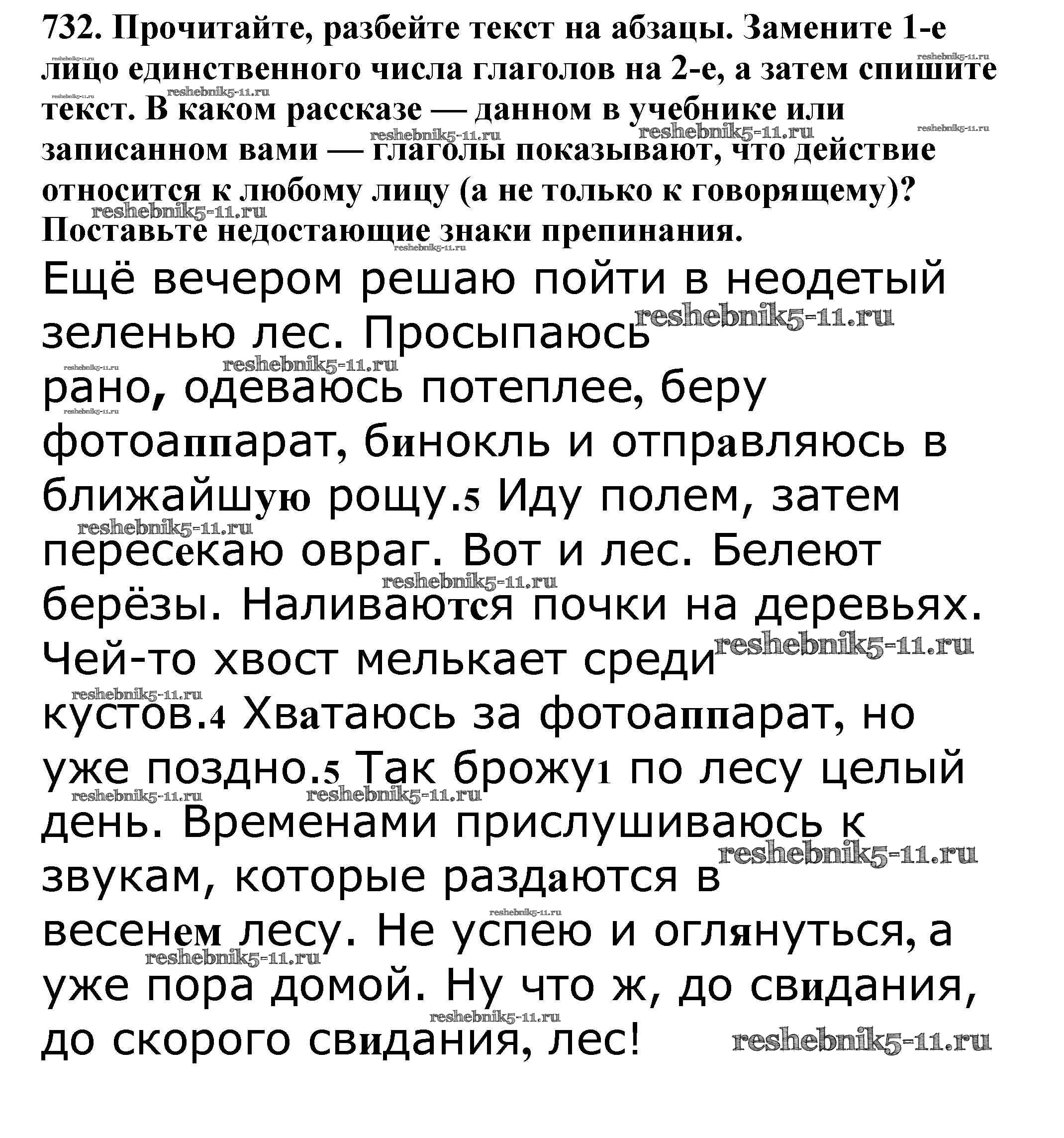 Русский язык за 5 класс Баранов Учебник Просвещение часть 2. упражнение 732