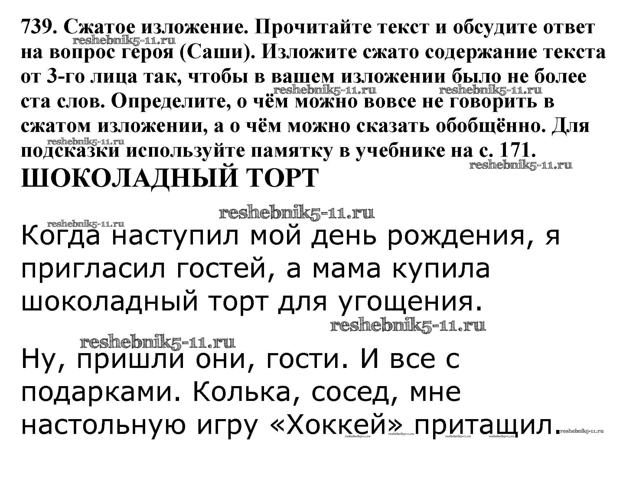 Русский язык за 5 класс Баранов Учебник Просвещение часть 2. упражнение 739
