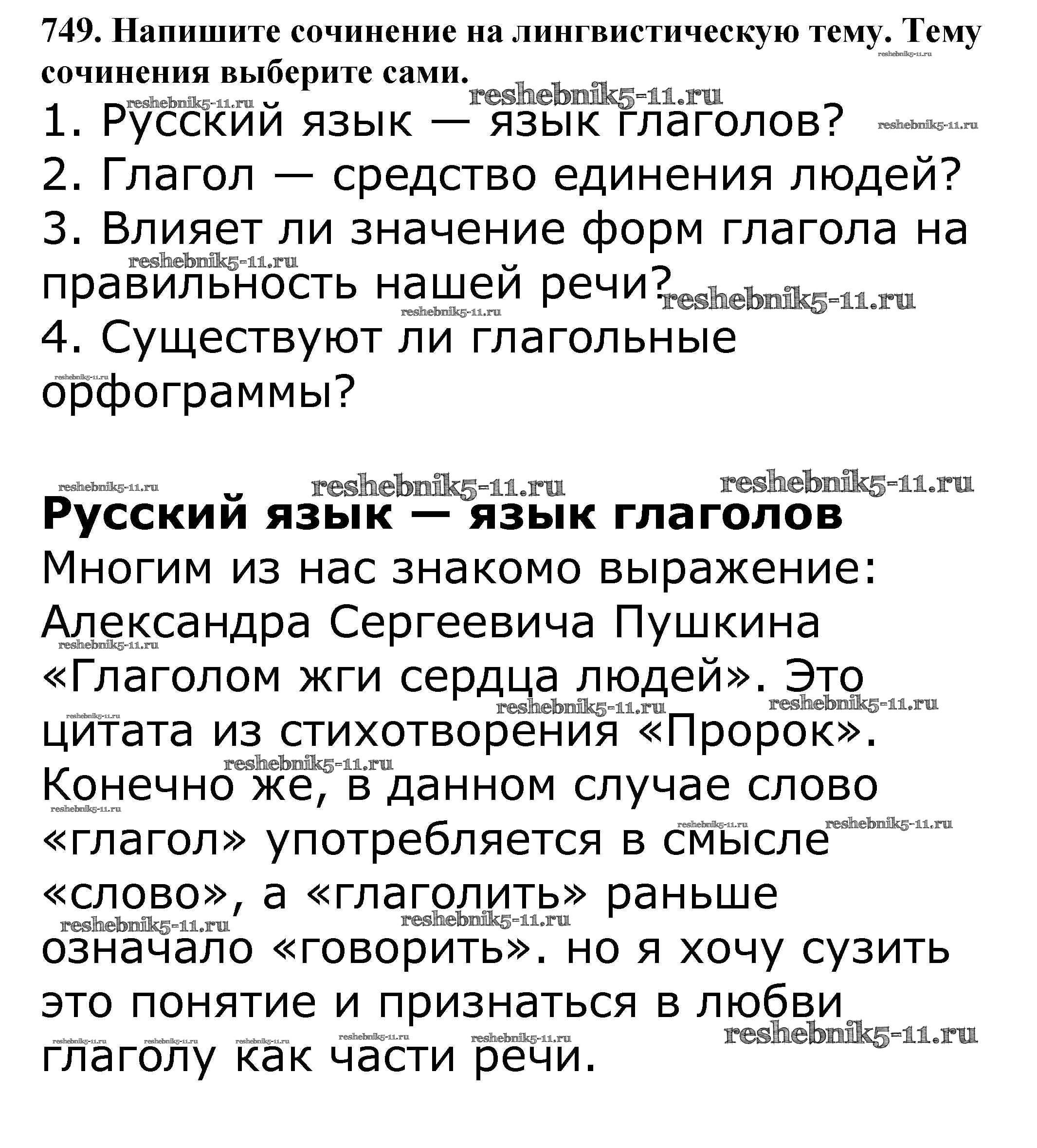 Готовая домашняя работа с ответами по Русскому языку за 5 класс Баранов, Ладыженская, Тростенцова, Кулибаба, Григорян Учебник Часть 1, 2 Просвещение 2016 ФГОС - Часть 2. Упражнения 749