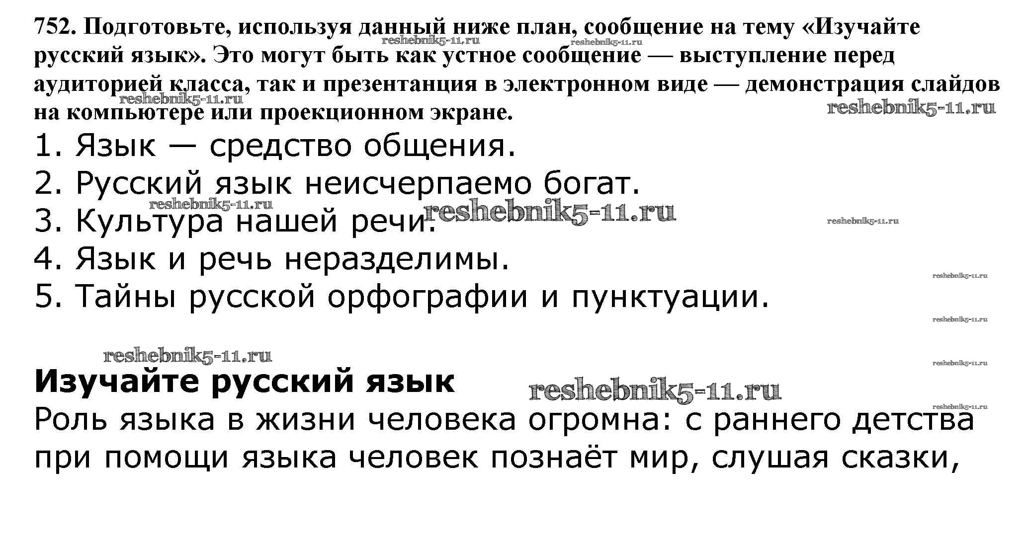Русский язык за 5 класс Баранов Учебник Просвещение часть 2. упражнение 752