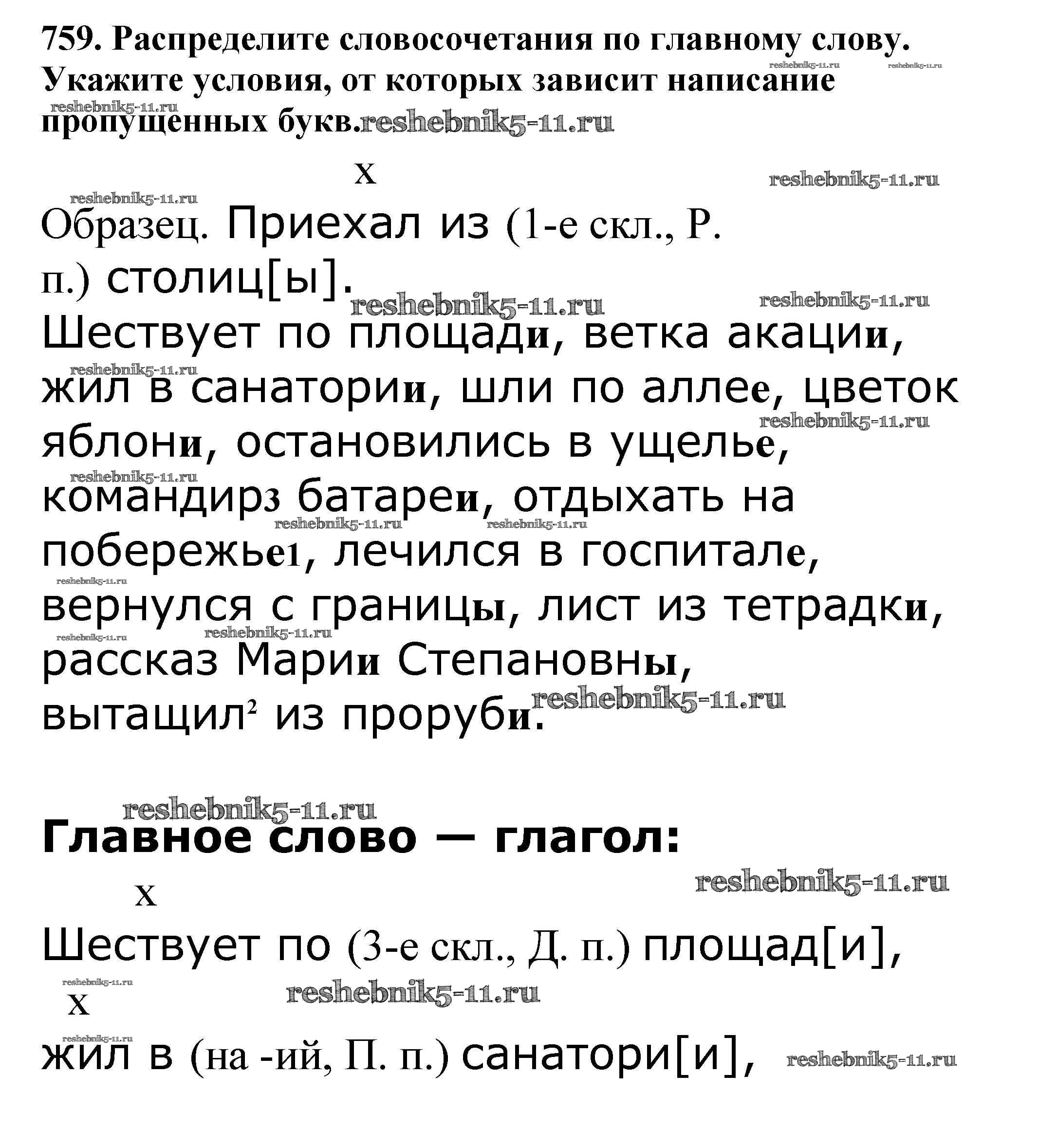Готовая домашняя работа с ответами по Русскому языку за 5 класс Баранов, Ладыженская, Тростенцова, Кулибаба, Григорян Учебник Часть 1, 2 Просвещение 2016 ФГОС - Часть 2. Упражнения 759