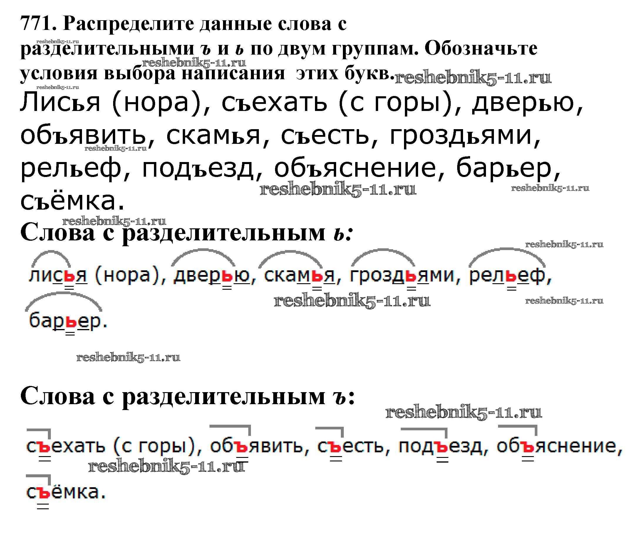 Готовая домашняя работа с ответами по Русскому языку за 5 класс Баранов, Ладыженская, Тростенцова, Кулибаба, Григорян Учебник Часть 1, 2 Просвещение 2016 ФГОС - Часть 2. Упражнения 771