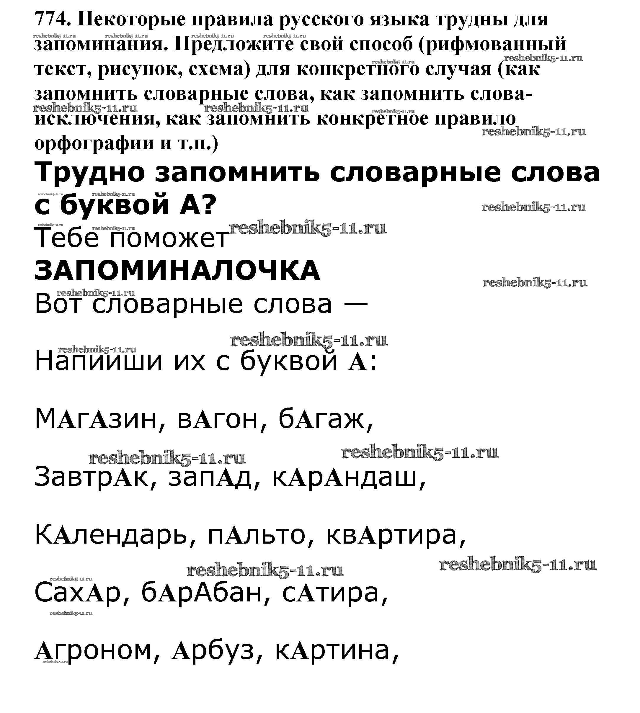 Русский язык за 5 класс Баранов Учебник Просвещение часть 2. упражнение 774