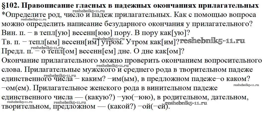 Готовая домашняя работа с ответами по Русскому языку за 5 класс Баранов, Ладыженская, Тростенцова, Кулибаба, Григорян Учебник Часть 1, 2 Просвещение 2016 ФГОС - Вопросы §102