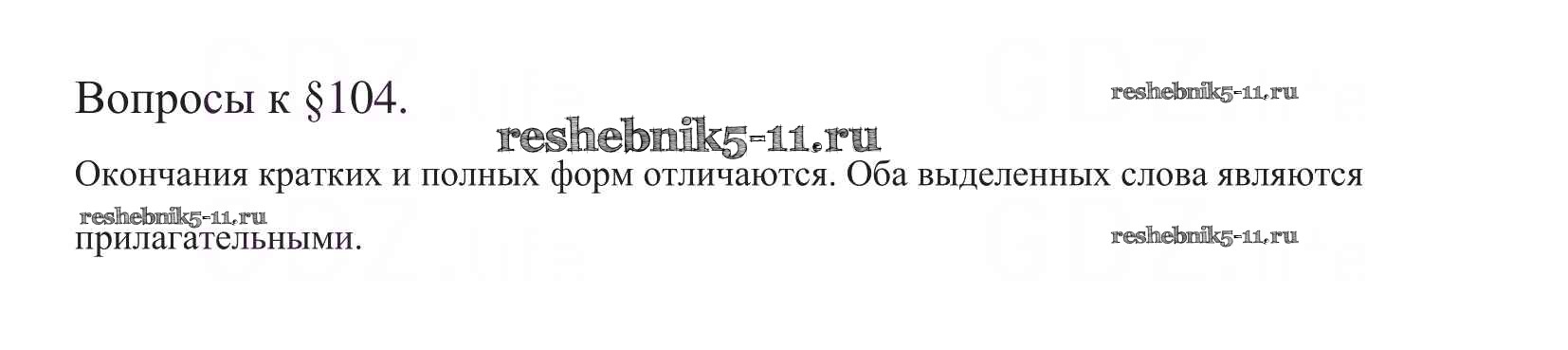 Готовая домашняя работа с ответами по Русскому языку за 5 класс Баранов, Ладыженская, Тростенцова, Кулибаба, Григорян Учебник Часть 1, 2 Просвещение 2016 ФГОС - Вопросы §104