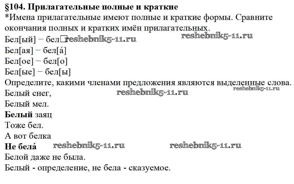 Русский язык за 5 класс Баранов Учебник Просвещение вопрос §104