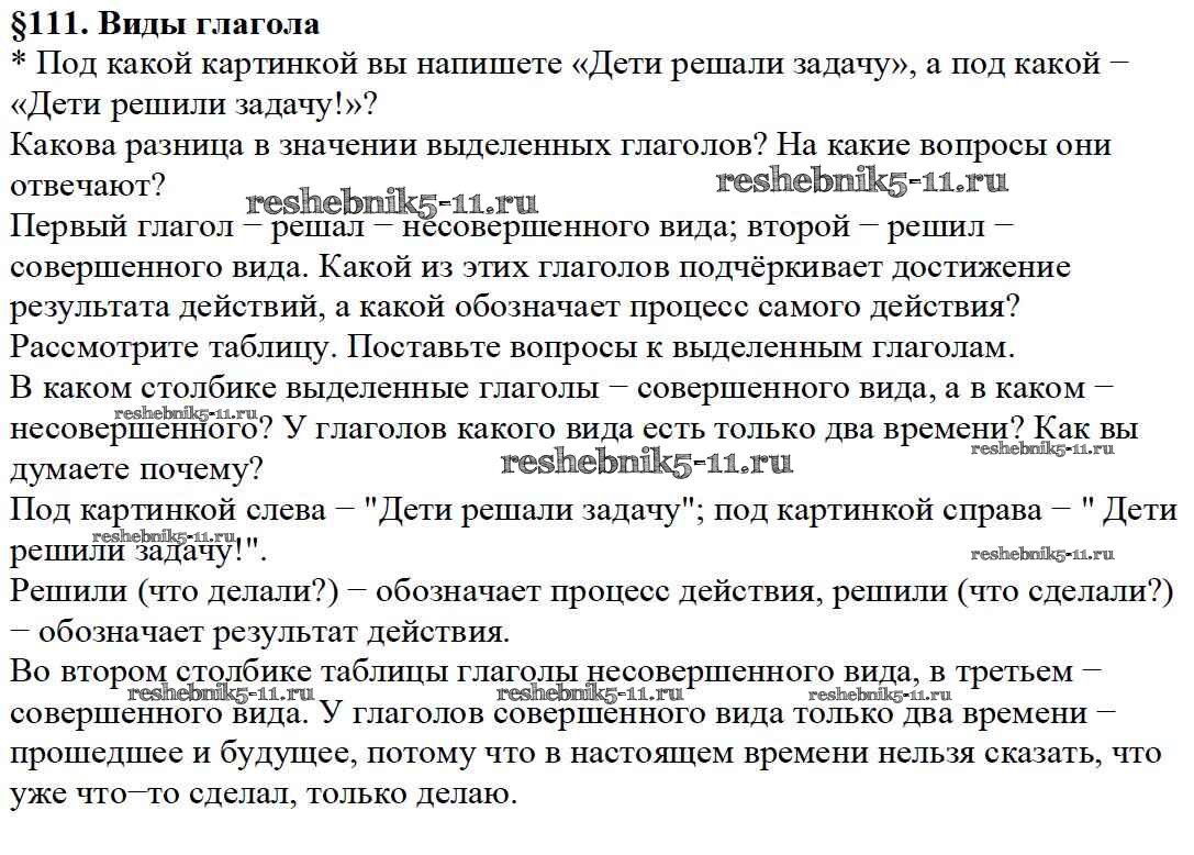 Русский язык за 5 класс Баранов Учебник Просвещение вопрос §111