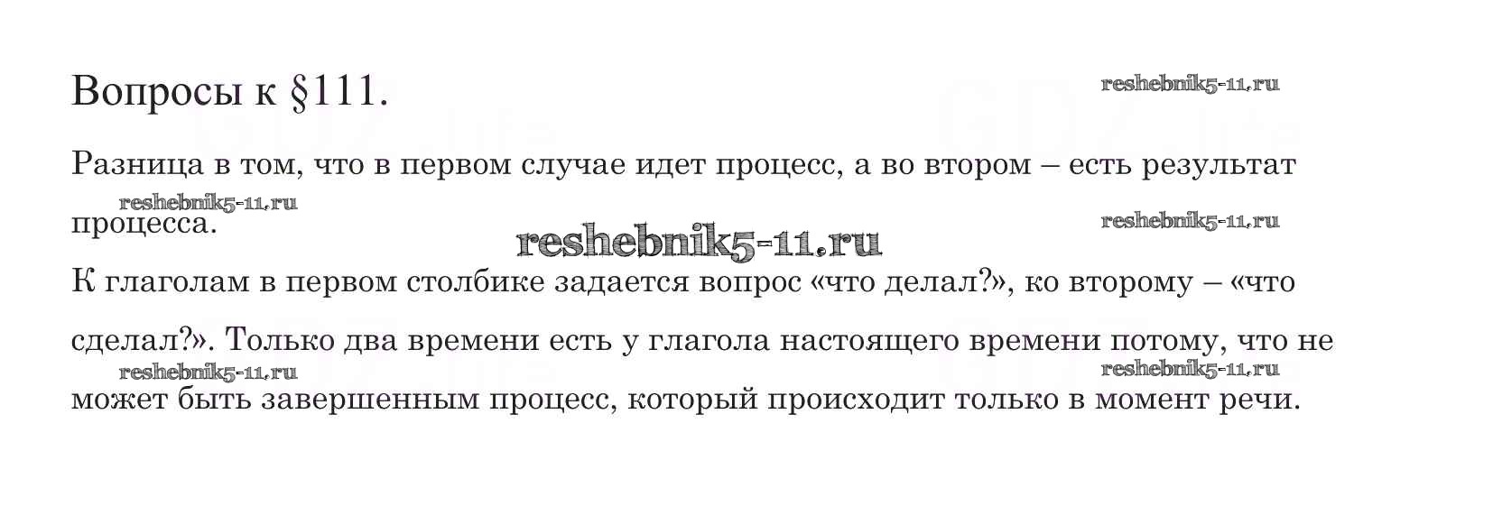 Готовая домашняя работа с ответами по Русскому языку за 5 класс Баранов, Ладыженская, Тростенцова, Кулибаба, Григорян Учебник Часть 1, 2 Просвещение 2016 ФГОС - Вопросы §111