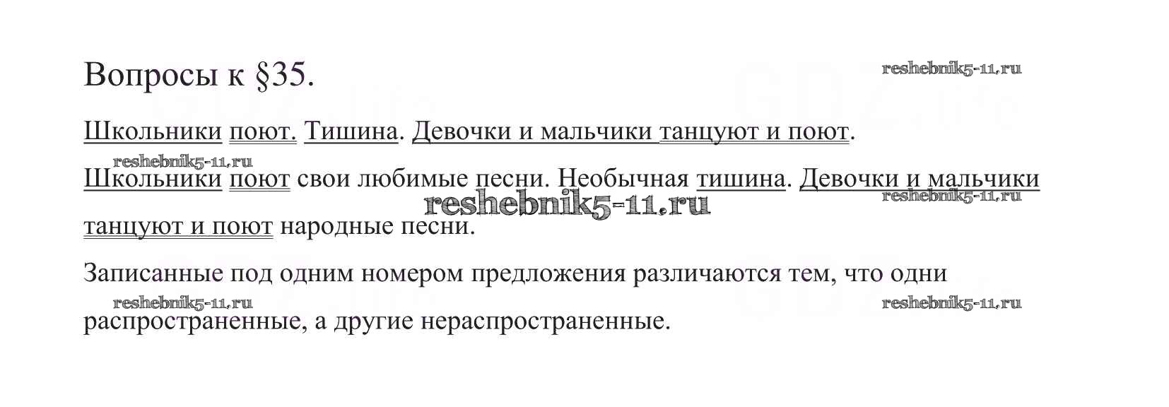 Готовая домашняя работа с ответами по Русскому языку за 5 класс Баранов, Ладыженская, Тростенцова, Кулибаба, Григорян Учебник Часть 1, 2 Просвещение 2016 ФГОС - Вопросы §35