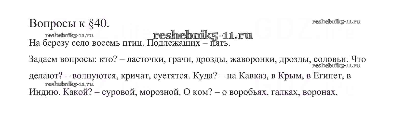 Готовая домашняя работа с ответами по Русскому языку за 5 класс Баранов, Ладыженская, Тростенцова, Кулибаба, Григорян Учебник Часть 1, 2 Просвещение 2016 ФГОС - Вопросы §40