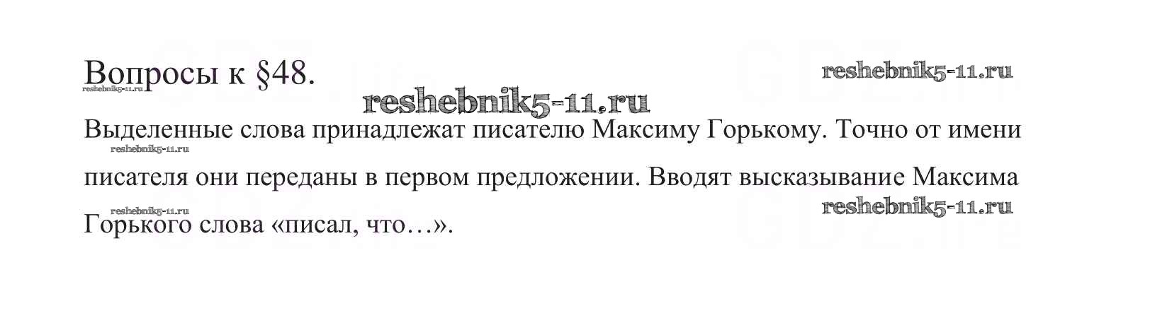 Готовая домашняя работа с ответами по Русскому языку за 5 класс Баранов, Ладыженская, Тростенцова, Кулибаба, Григорян Учебник Часть 1, 2 Просвещение 2016 ФГОС - Вопросы §48