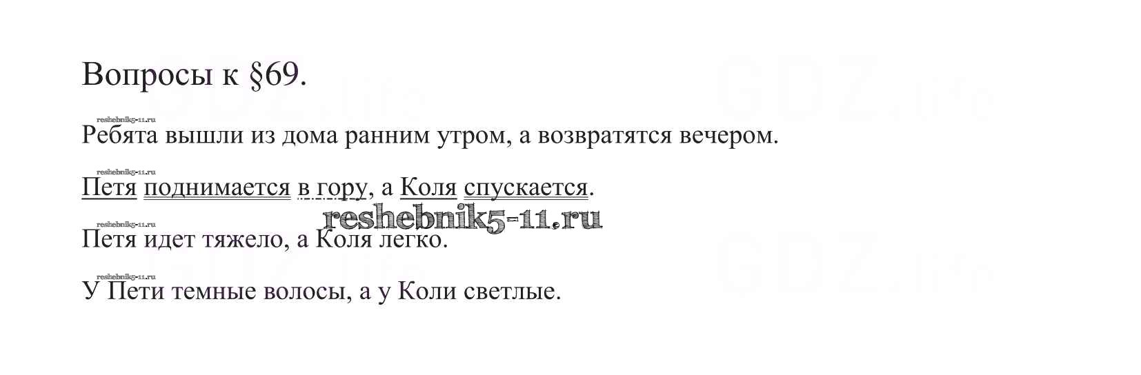 Готовая домашняя работа с ответами по Русскому языку за 5 класс Баранов, Ладыженская, Тростенцова, Кулибаба, Григорян Учебник Часть 1, 2 Просвещение 2016 ФГОС - Вопросы §69