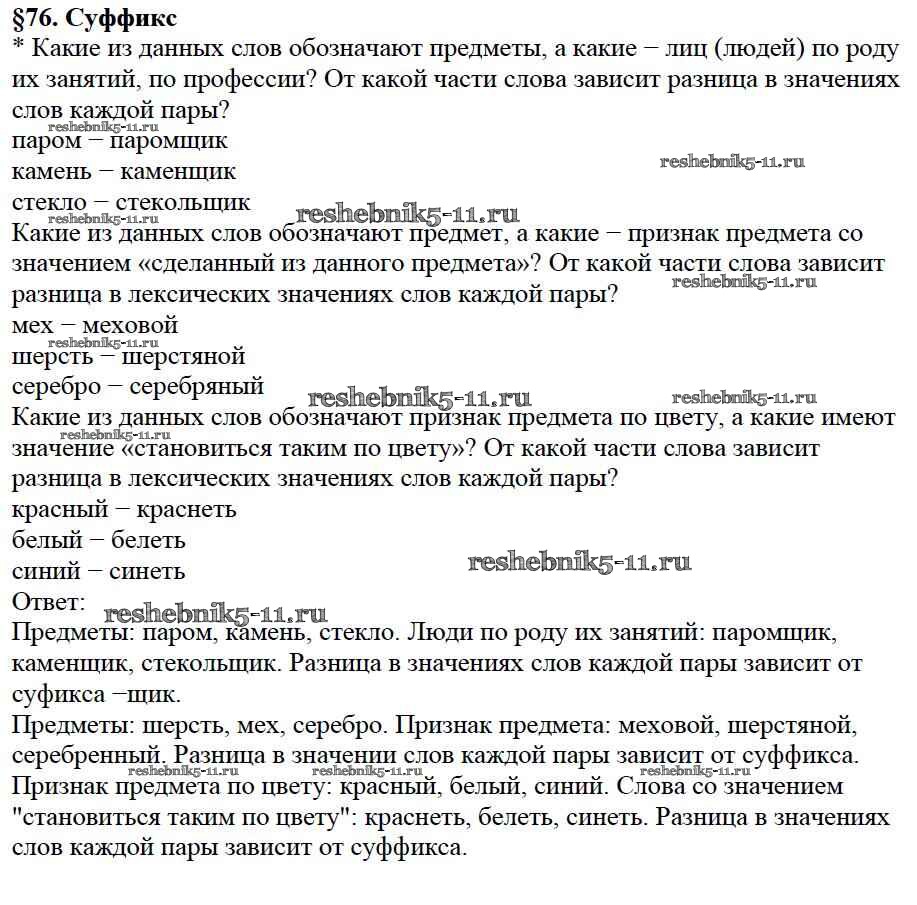 Русский язык за 5 класс Баранов Учебник Просвещение вопрос §76
