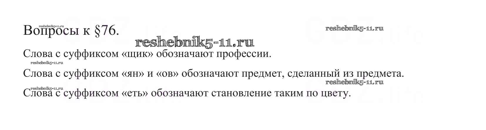 Готовая домашняя работа с ответами по Русскому языку за 5 класс Баранов, Ладыженская, Тростенцова, Кулибаба, Григорян Учебник Часть 1, 2 Просвещение 2016 ФГОС - Вопросы §76