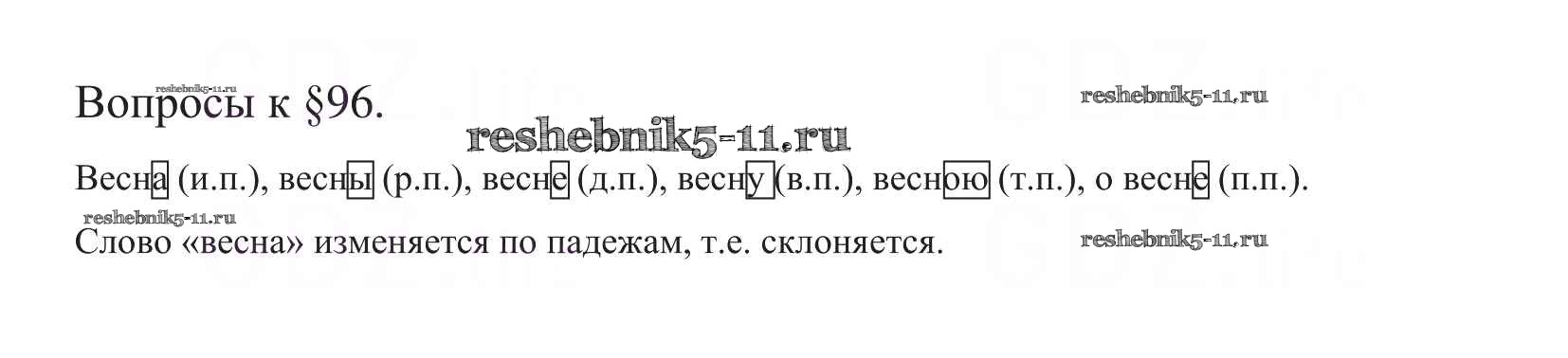 Готовая домашняя работа с ответами по Русскому языку за 5 класс Баранов, Ладыженская, Тростенцова, Кулибаба, Григорян Учебник Часть 1, 2 Просвещение 2016 ФГОС - Вопросы §96