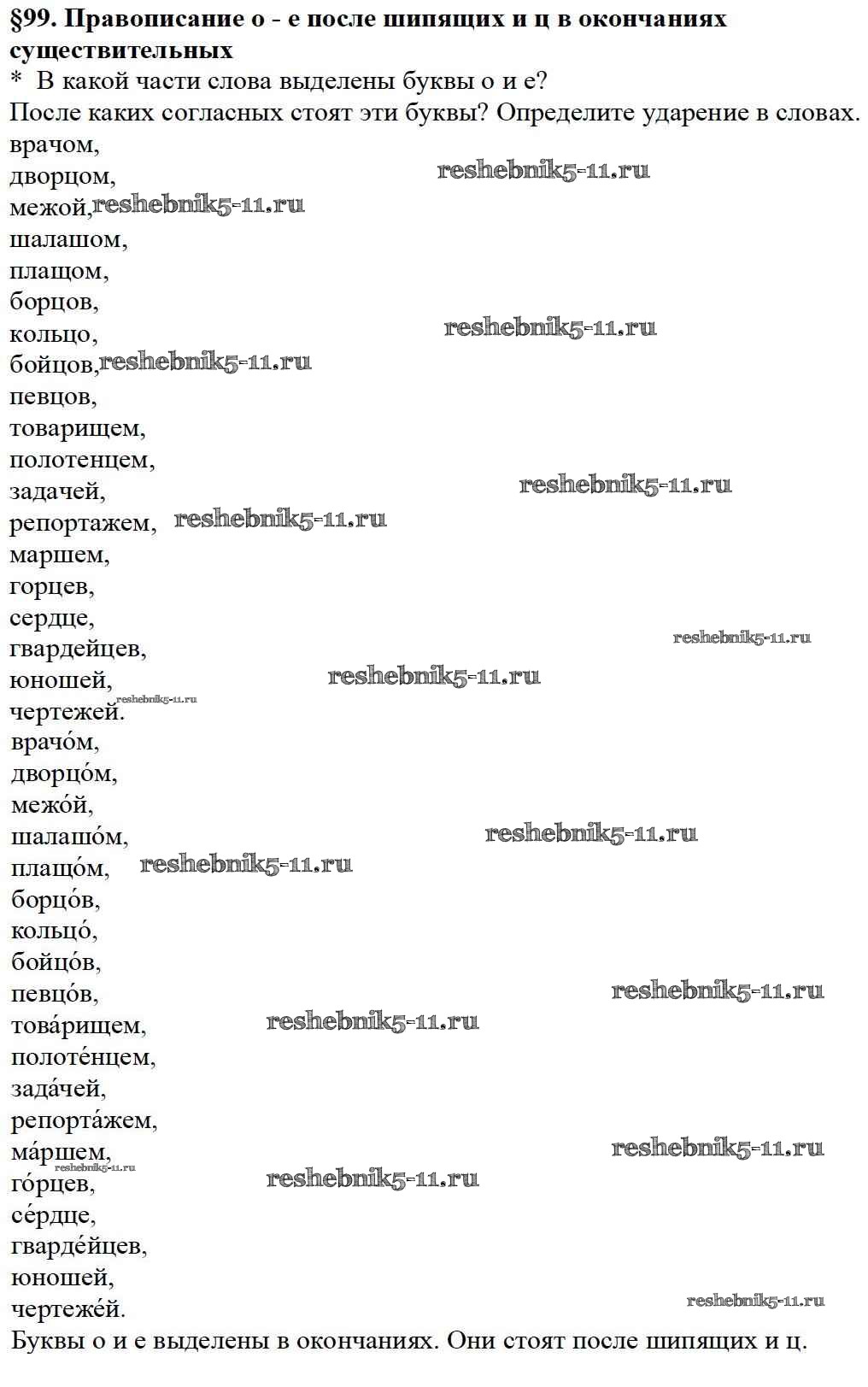 Русский язык за 5 класс Баранов Учебник Просвещение вопрос §99