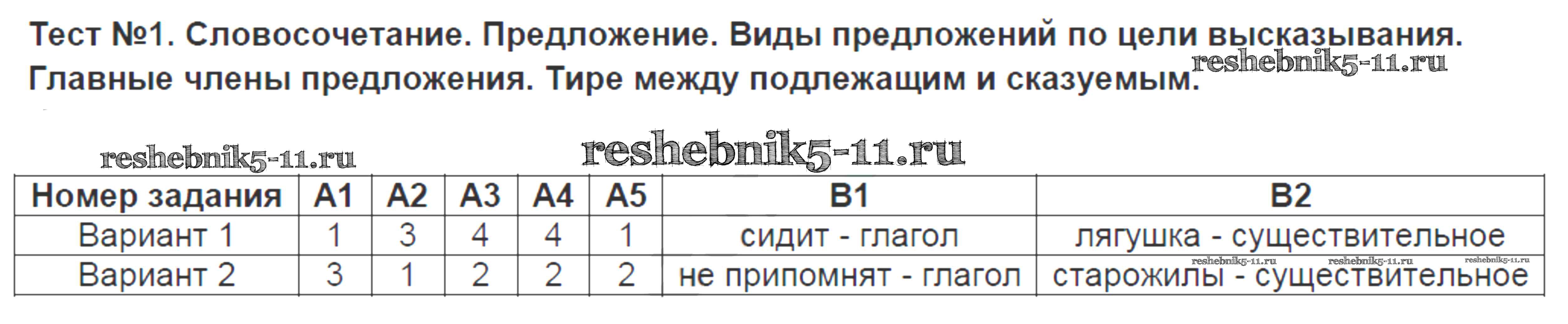 Готовая домашняя работа с ответами по Русскому языку за 5 класс Селезнева Контрольно-измерительные материалы (КИМ) Экзамен 2014 ФГОС - Тесты 1