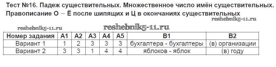 Готовая домашняя работа с ответами по Русскому языку за 5 класс Селезнева Контрольно-измерительные материалы (КИМ) Экзамен 2014 ФГОС - Тесты 16